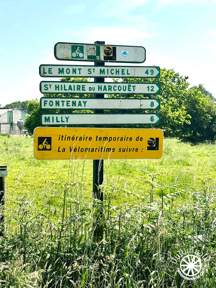 ก่อนเข้าเมือง St Hilaire du Harcouët เจอเส้นทาง Eurovelo 4 ที่เชื่อมต่อลงไปถึงช่องแคบอังกฤษ มีท่าเรือหลายแห่งตลอดเส้นทาง Eurovelo 4 เพื่อข้ามไปประเทศอังกฤษ