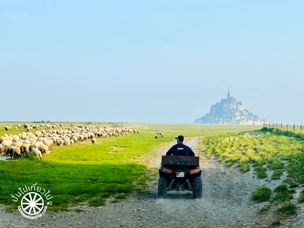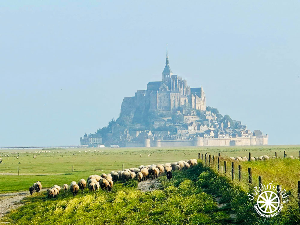 พวกเราพักอยู่ในหมู่บ้านห่างจาก Mont St Michel ประมาณ 4 กิโลเมตร ตามคำแนะนำของเพื่อน ตอนเช้าจะได้เห็นวิถีชีวิตของชาวบ้านในหมู่บ้าน ประมาณ 7 โมงเช้า จะมีการต้อนฝูงเเกะออกไปที่ทุ่งหญ้า เป็นจุดที่คนชอบถ่ายรูปไม่ควรพลาด