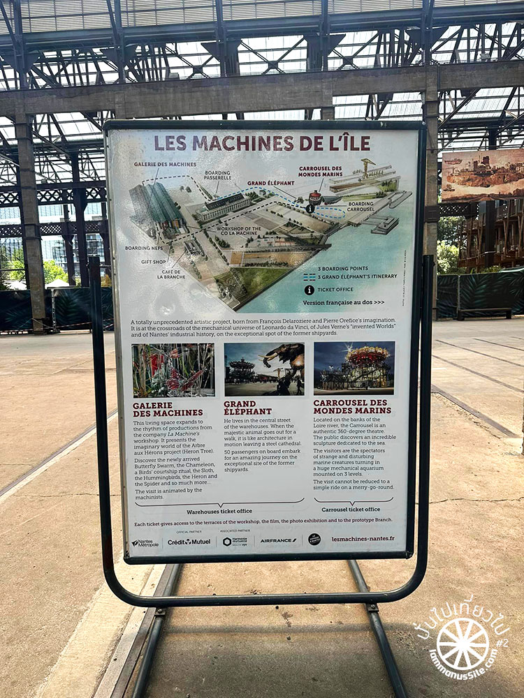 โครงการ The Machines of the Isle of Nantes (Les Machines de l’île) เป็นโครงการด้านศิลปะและวัฒนะธรรม สถานที่จัดแสดงผลงานเดิมเคยเป็น warehouse ของอู่ต่อเรือเก่าอยู่ริมแม่น้ำ Loire ฝั่งตรงข้ามกับ Nantes center ปัจจุบันเป็นหนึ่งในสถานที่ท่องเที่ยวยอดนิยมใน Nantes และเป็น urban and cultural development ที่กลมกลืนได้ดีมาก