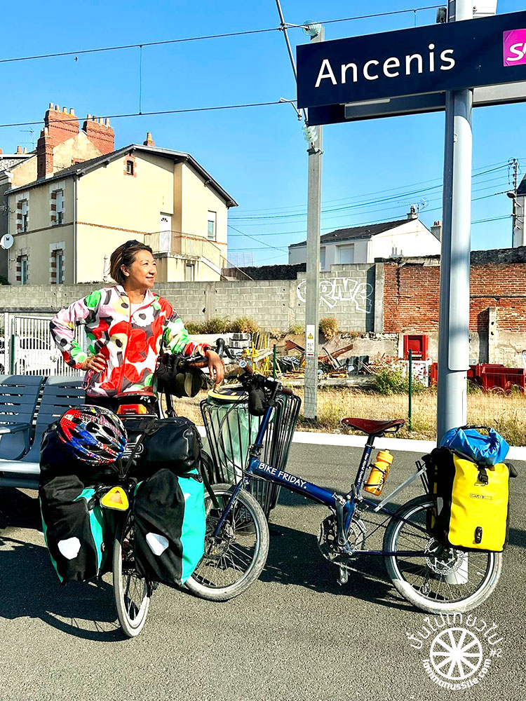 โชคดีมากๆ ที่ได้แวะไปคุยกับร้านจักรยานแถวที่พักใน Nantes ได้รับคำเตือนว่าถ้าปั่นวันเดียวอาจจะเหนื่อยไป ให้ขึ้นรถไฟไปลงที่เมือง Ancenis จะเหลือระยะปั่นไม่เกิน 70 กิโลเมตร