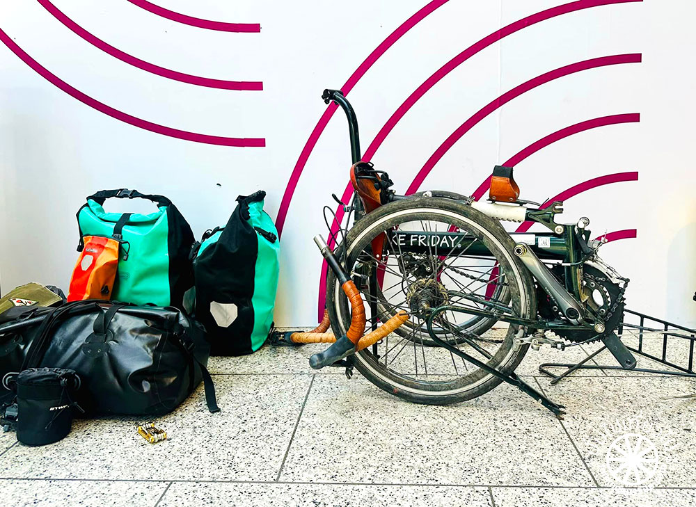 ขึ้นรถไฟสาย Thalys จากปารีสไปอัมสเตอร์ดัม ใช้เวลาเดินทาง 3 ชั่วโมง ออกเดินทางจากสถานี Paris Gare du Nord ตอนเตรียมจัดทริปก็ได้ศึกษาข้อมูลเรื่องการนำจักรยานขึ้นรถไฟของกลุ่มรถไฟ Eurostar ซึ่งไม่มีตู้จักรยานเลย ถ้าเป็นจักรยานคันใหญ่ต้องใส่กระเป๋า (hard หรือ soft cover ก็ได้) และถ้าเป็นจักรยานพับสามารถขึ้นได้ และถือเป็นจำนวนสัมภาระ 1 ชิ้น (ให้คนละ 2 ชิ้น รวมจักรยานเป็น 3 ชิ้น)