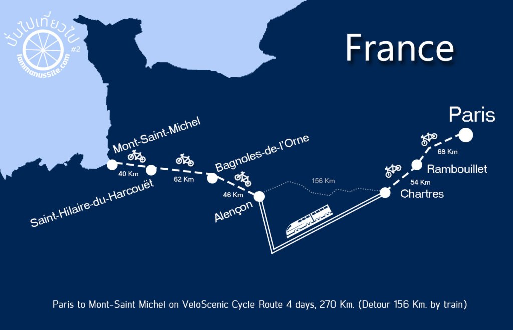เป้าหมายต่อไป Paris >> Mont Saint Michel ตามเส้นทาง Veloscenic (ทางจักรยานหมายเลข 40) ระยะทาง 450 กม.