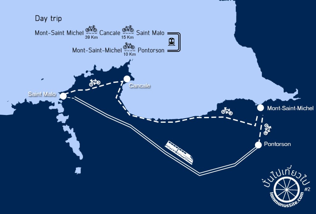วันนี้ปั่นออกจาก Mont Saint Michel ไป Saint-Malo ขากลับเอาจักรยานขึ้นรถไฟจาก Saint Malo มาลงสถานี Pontoson แล้วปั่น 10 กม. เข้าไปถึง Mont Saint Michel