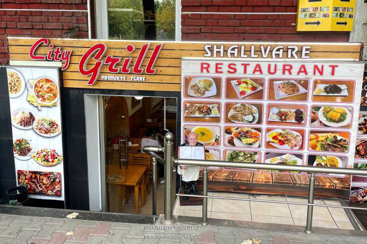 ร้านอาหารในแอลเบเนียจะมีรูป มีคำอธิบายภาษาอังกฤษให้ พร้อมบอกราคาชัดเจน อาหารที่หากินง่ายๆทั่วไปคือ พิซซ่า และอาหารอิตาเลี่ยนต่างๆ ส่วน Traditional food ก็จะมีร้านอยู่ตามสถานที่ท่องเที่ยว เขียนป้ายชัดเจน อันที่กินง่ายคือ Meat ball (ซ้าย) คล้ายๆหมูคลุกสมุนไพรปั้นเป็นก้อนทอด เอามากินกับข้าวได้ ถูกปากคนไทยอยู่ กับอีกเมนูที่ลองสั่งมาชิม Tasqebap (ขวา) ที่มีคำอธิบายว่า Calf meat, Onion, Garlic, Seasoning, Tomato sauce ก็คิดว่าน่าจะกินได้ ซึ่งก็อร่อยเลย คล้ายๆสตูว์