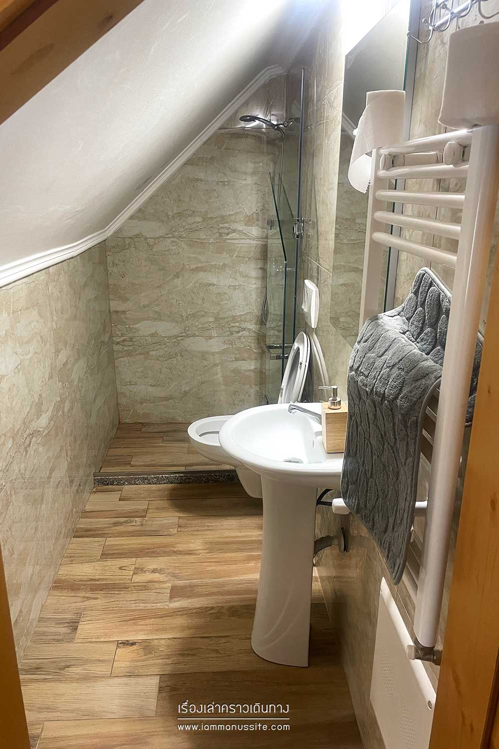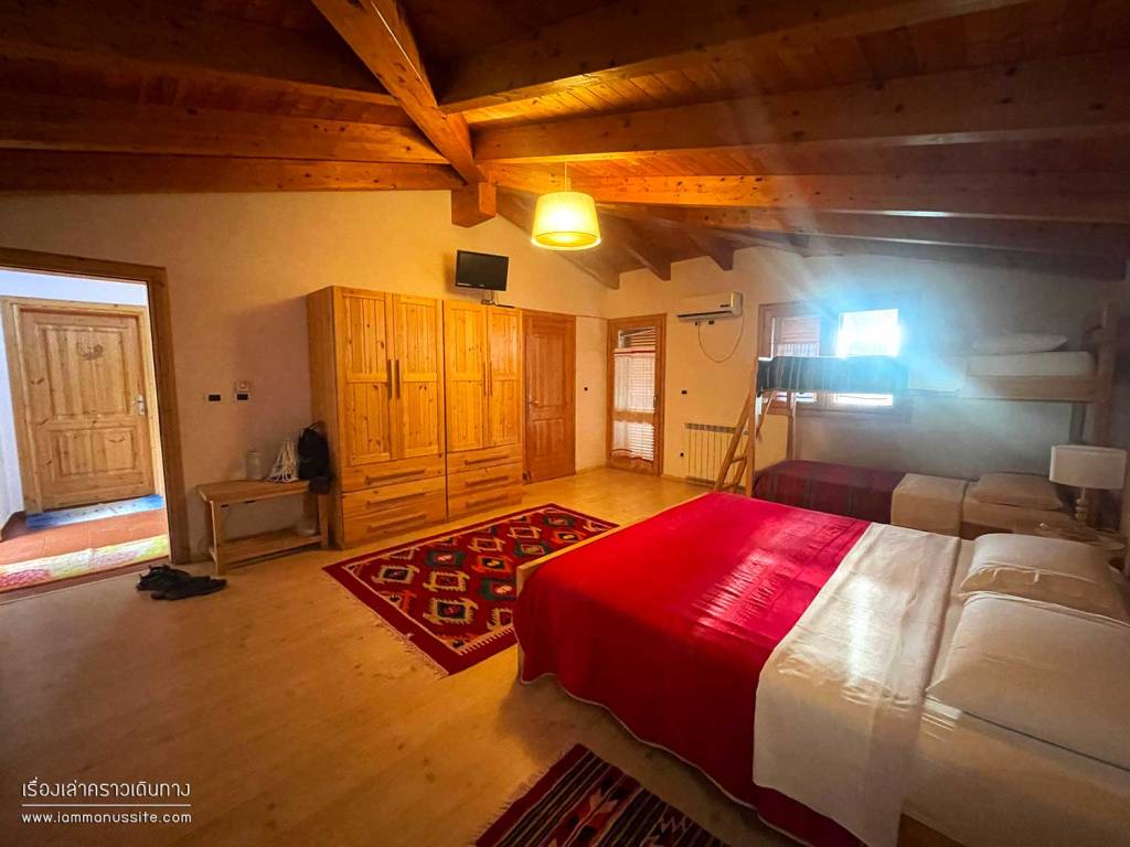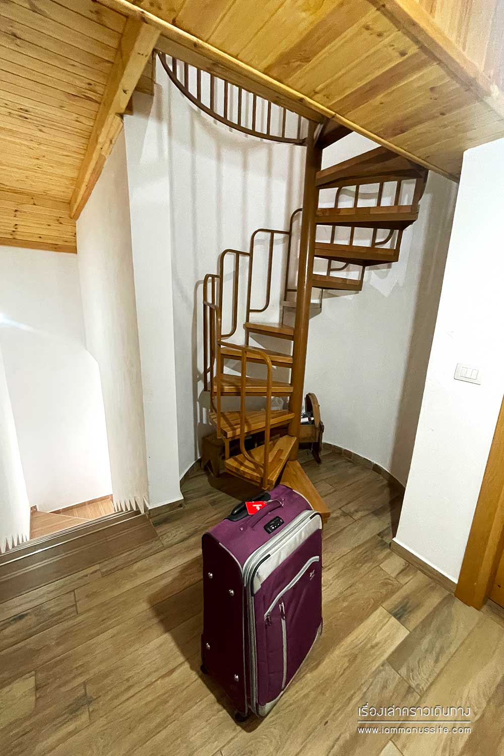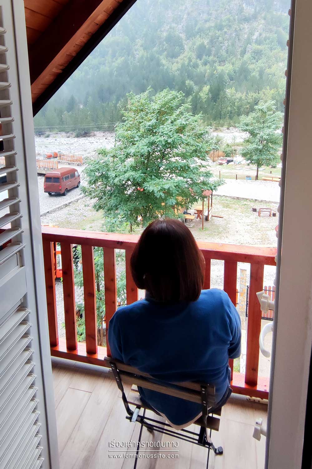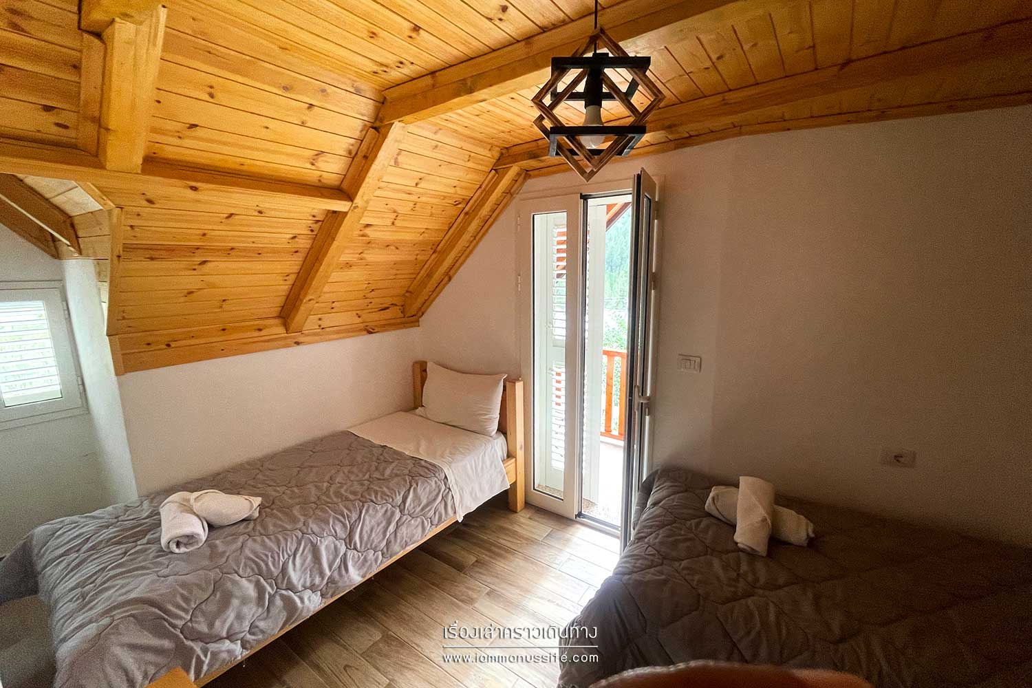 Bujtina Tinari Theth ที่พักคืนนี้เป็นบ้านหลังใหญ่ 3 ชั้น ที่ด้านในมีห้องให้พักเกือบ 10 ห้อง แต่ละห้องมีห้องน้ำในตัวด้วย เรากดจองมาแบบไหนไม่รู้ได้ห้องบนสุด เกือบจะเรียกว่าห้องใต้หลังคาก็ได้ แบกของทุลักทุเลนิดหน่อยแถมเจอบันไดวนไปอีก แต่เข้ามาในห้องแล้ว บรรยากาศมันคุ้มค่าจริงๆ