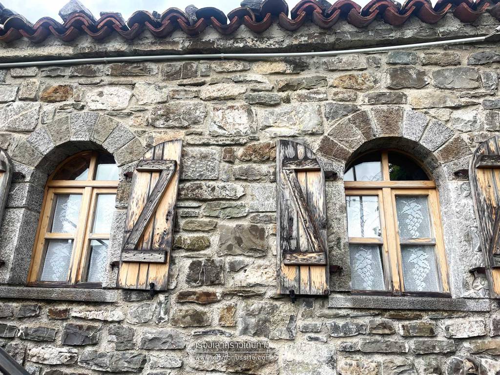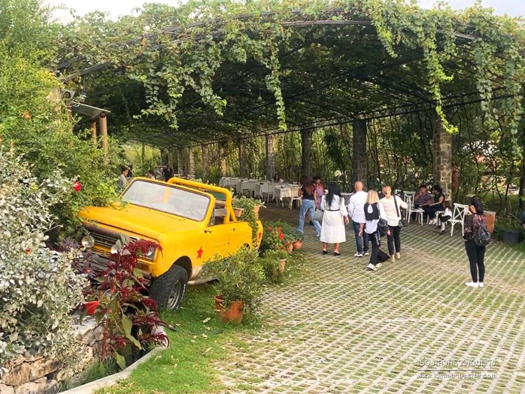 ตึกที่พัก สร้างด้วยหิน อยู่บนเนินด้านหลังร้านอาหาร ปลูกดอกไม้ ต้นไม้ ไปยันผลไม้ รอบๆอาคาร