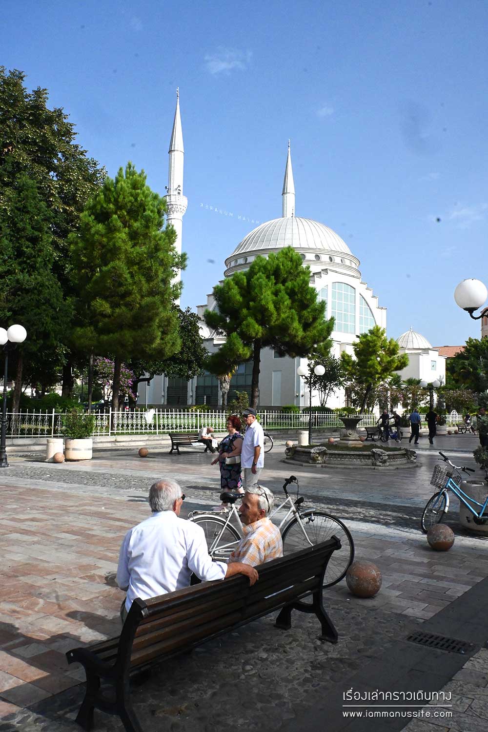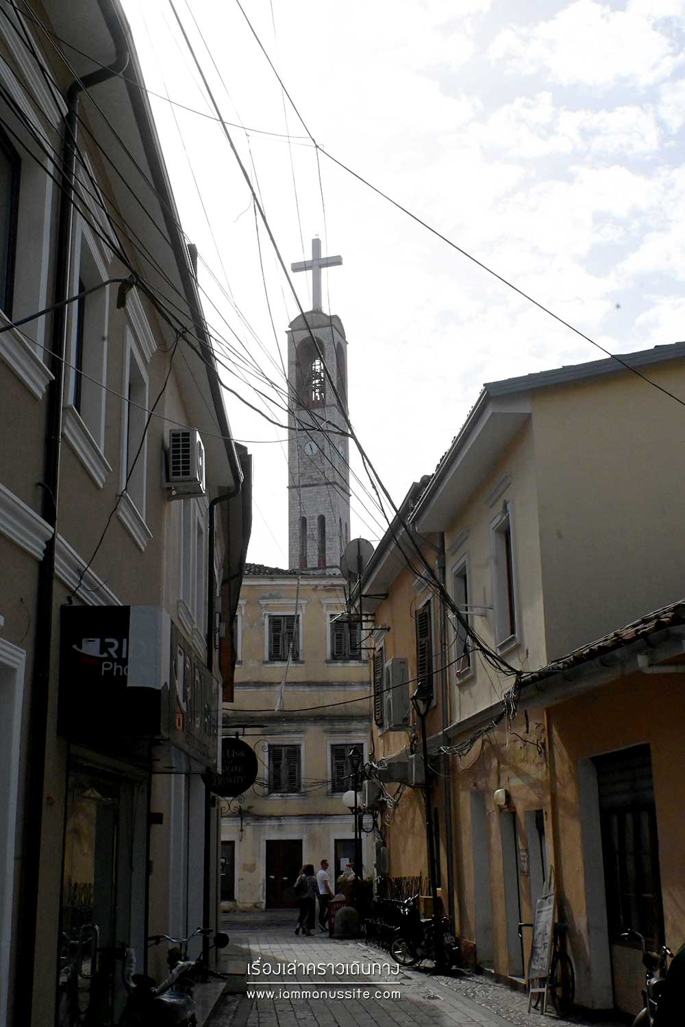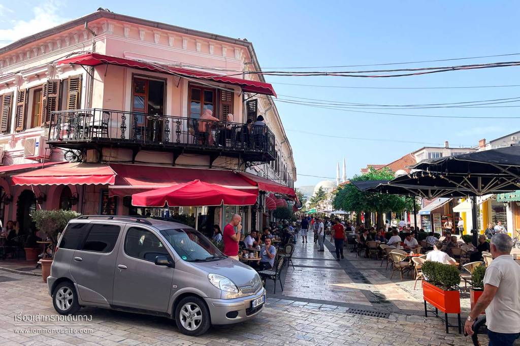 ถนน Rruga Kolë Idromeno คึกคักมาก ทั้งนักท่องเที่ยวและคนท้องถิ่น แวะนั่งจิบกาแฟมองผู้คนเป็นการพักขา