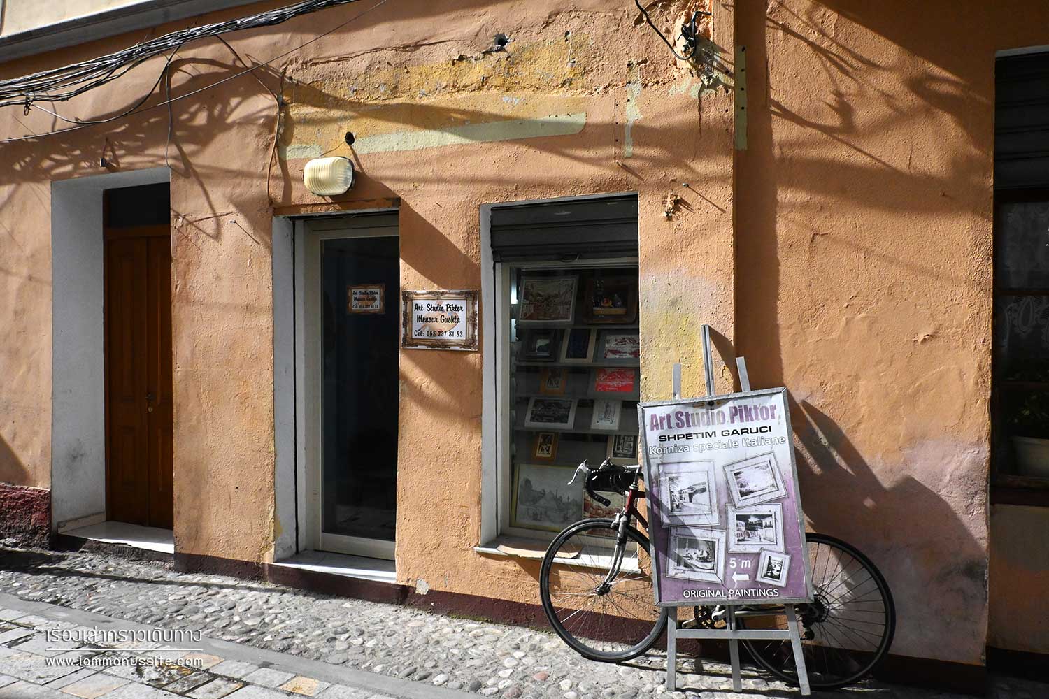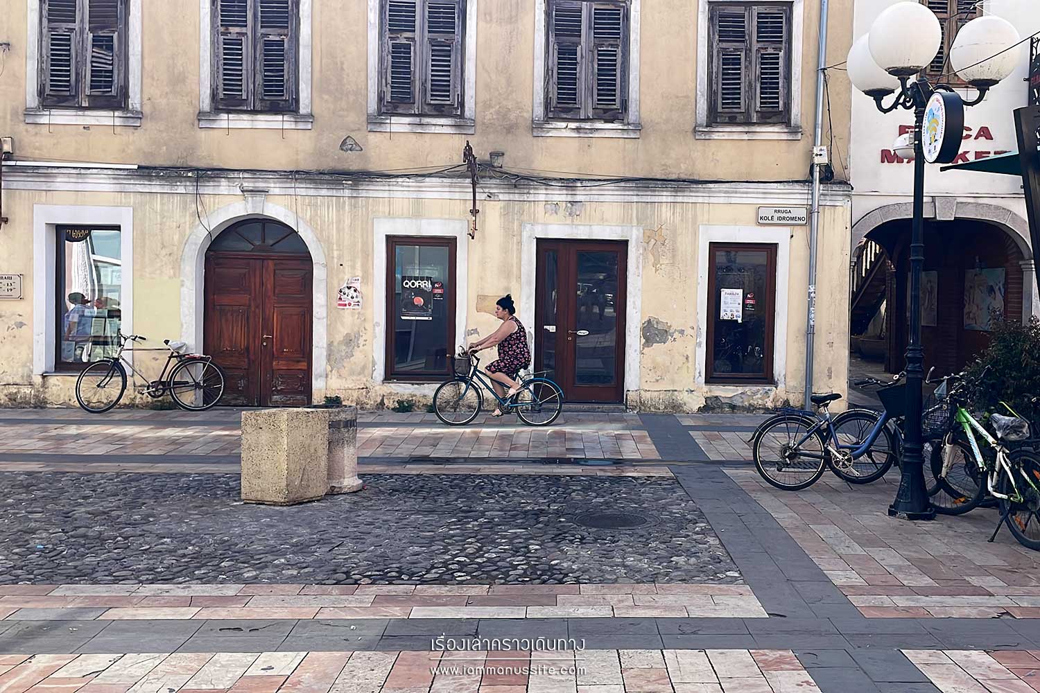 ช่วงเช้าเก็บตก Shkoder ด้วยการขับรถไปหาที่จอดแถบกลางเมือง แล้วเดินเล่นไปถนนคนเดิน Rruga Kolë Idromeno คนเดินเล่นนั่งเล่นกันเยอะมากตั้งแต่สายๆ ตลอดถนนเป็นร้านอาหาร ร้านกาแฟ ที่พัก และมี Art Gallery กับ Museum เลี้ยวเข้าตามตรอกซอกซอย เป็นย่าน Old Town ของเมือง ที่ผู้คนยังอาศัยอยู่จริง ผู้คนปั่นจักรยานสวนกันไปมา ไม่ใช่นักท่องเที่ยวแต่เป็นชาวเมือง Shkoder ได้ชื่อว่าเป็นเมืองหลวงแห่งการปั่นจักรยานของแอลเบเนีย เพราะอย่างนี้นี่เอง เดินเล่นถ่ายรูปไปจนสุดถนนก็มานั่งแวะพักจิบกาแฟ
