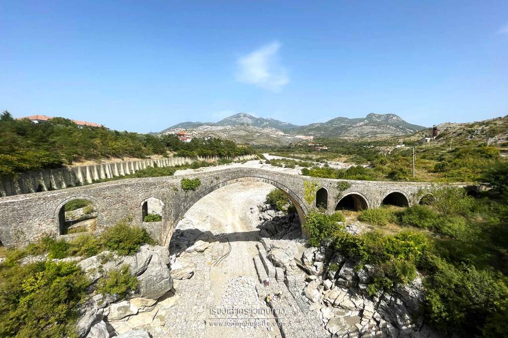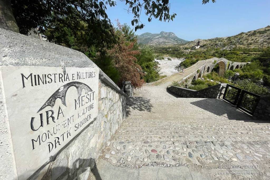 Mesi Bridge อยู่ออกนอกเมือง Shkoder ไปประมาณ 8 กม. ขับรถ 10 นาทีก็ถึงแล้ว แต่ถ้าไม่ได้ขับรถเที่ยวน่าจะไปยากอยู่ นอกจากเรียกแท้กซี่พาไป สะพานหินโบราณออตโตมัน สร้างมาตั้งแต่ 1868 ข้ามแม่น้ำ Kiri ซึ่งแห้งผากในหน้าร้อน สะพานได้รับการดูแลดี ยังสวยงาม แต่แม่น้ำไม่มีน้ำเลยรู้สึกแห้งแล้งไปหน่อย