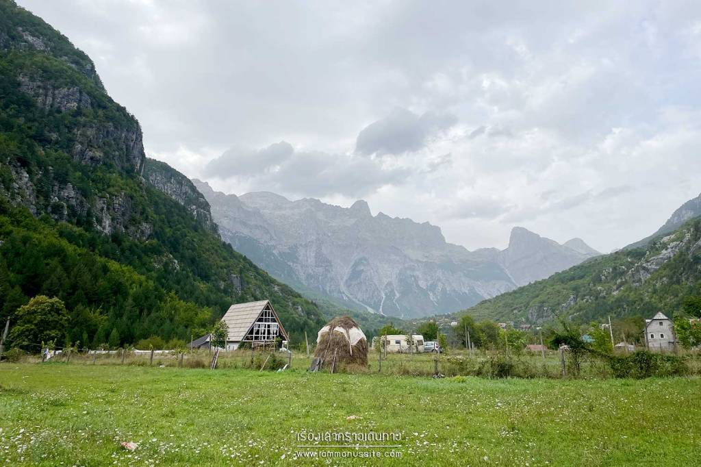 Theth หมู่บ้านในหุบเขาทางตอนเหนือของประเทศ ในเขตอุทยานแห่งชาตื Theth National Park อยู่ใกล้ชายแดนมอนเตเนโกรนิดเดียว ขับรถจาก Shkoder ไป 80 กม. ระยะทางไม่ไกล แต่ช่วง 20 กม.ก่อนถึงเป็นทางเขาคดเคี้ยว ก็ขับได้ช้าหน่อย แต่วิวสวยมาก ขับช้าๆชมวิวไปเรื่อยๆ สุดท้ายก็จะหลุดเข้าอยู่ในหุบเขาล้อมรอบไปด้วยแนวเทือกเขาแอลป์ | Albania Alps
