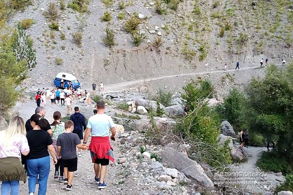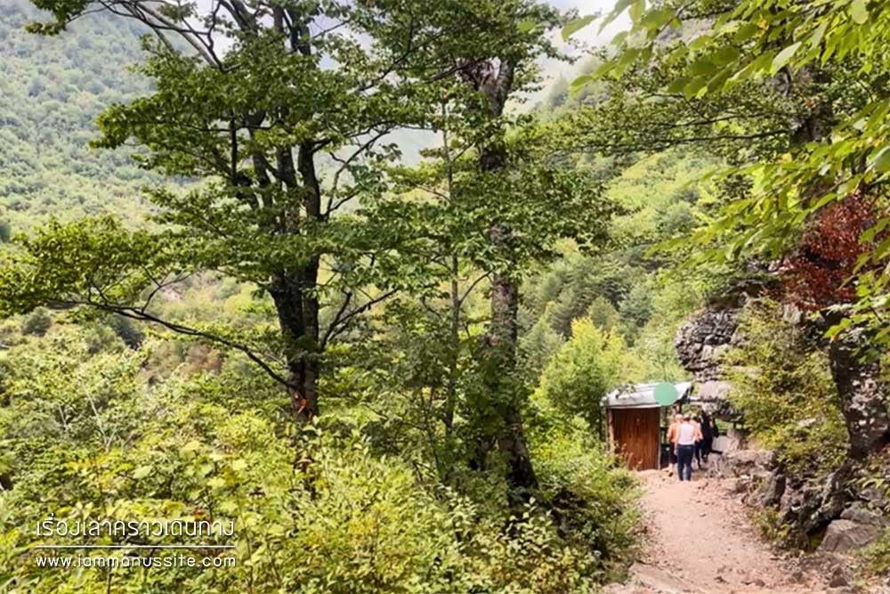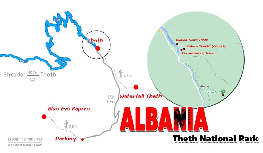 นักท่องเที่ยวทุกคนที่มา Theth Village มากกว่า 90% มีจุดหมายปลายทางที่ Blue Eye ต้องขับรถออกจากจุดที่เราพักไปอีก 7 กม. เข้าไปในเขตพื้นที่ Theth National Park เป็นทางเขาคดเคี้ยว รถเยอะทั้งรถเล็กรถใหญ่ยันรถบัส ขับระวังๆหน่อย จากนั้นต้อง Trekking ไปอีก 3 กม. แต่ Trekker หลายคนบอกว่า 3 กม.มันน้อยไป ก็เลยเดินจาก Theth Village ไปเลยก็มีเยอะ รวมระยะทาง 10-12 กม. เดินไปเดินกลับทั้งวันแหละ เหมาะกับคนที่มานอนหลายคืน