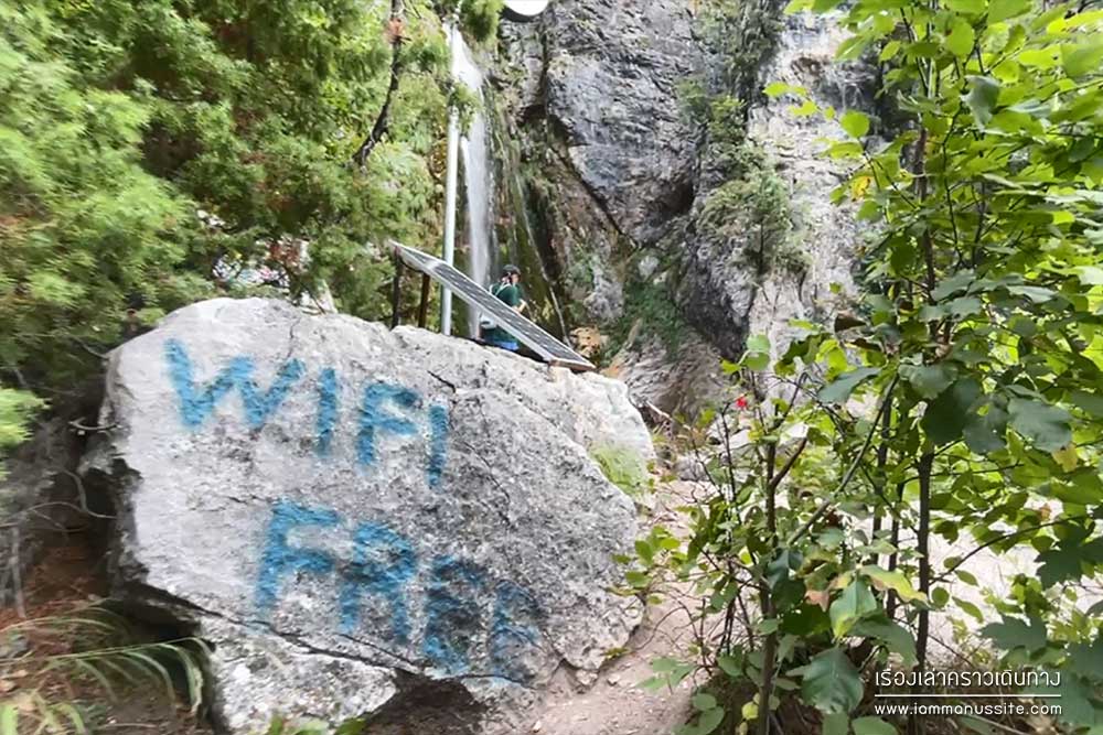 ไต่ขึ้นไปเรื่อยๆ สุดทางหลุดขำออกมาตรงหินที่เขียนว่า Wifi Free พร้อมแผงโซลาร์เซลล์ รับรองไม่ขาดการสื่อสารแน่ๆ