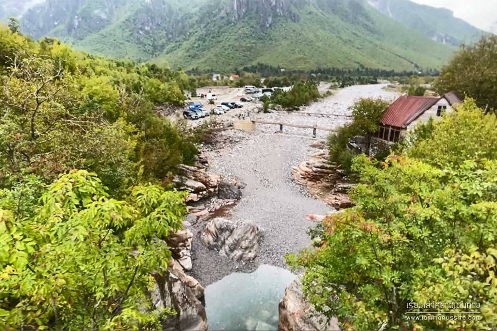 ถนนมาสุดจุดจอดรถ เดินข้ามแม่น้ำไปทางซ้ายจะมีร้านอาหาร 2-3 ร้าน แล้วมีเส้นทางเดินเพื่อไป Blue Eye ได้เลย รูปนี้มาถ่ายตอนกลับลงมาก ก็แวะทานเที่ยงที่นี่ก่อนเดินกลับไปหารถที่จอดก่อนถึงจุดนี้