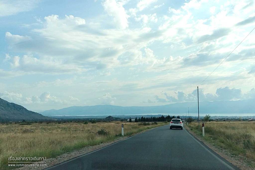 ขากลับเราก็ต้องขับมุ่งหน้าไปทาง Shkoder เหมือนตอนขามา แต่ไม่เข้าไปในเมือง เลี้ยวออกไปทางใต้มุ่งหน้าเข้าเขต Lezhe ถนนพุ่งเข้าหา Shkoder Lake ที่กว้างใหญ่สุดๆ ตอนขามาเราไม่ได้เห็นเพราะอยู่ด้านหลัง