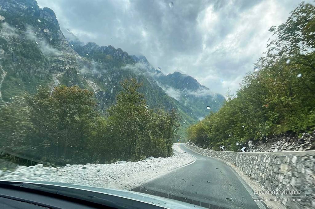 จากนี้จะขับรถขึ้นเหนือต่อไปอีกที่หมู่บ้านเธท | Theth Village หมู่บ้านกลางหุบเขาในเขตอุทยานแห่งชาติ ช่วงแรกถนนยังเป็น 2 เลนขับสบาย หลังจากเลี้ยวขวาทางแยกไปทางจะเล็กลงเรื่อยๆ แต่ยังเป็น 2 เลนที่กว้างประมาณเลนครึ่ง คนแอลเบเนียขับกันชินแล้ว แต่เราเสียวทุกครั้งเวลามีรถคันใหญ่ๆสวนมาก และสุดท้ายแล้วทางเลนครึ่งนี้จะต้องลัดเลาะไปตามเขาอีกต่างหาก ต้องขับอย่างระมัดระวัง ทางไม่ได้สูงชันมากแต่คดเคี้ยวพอสมควร