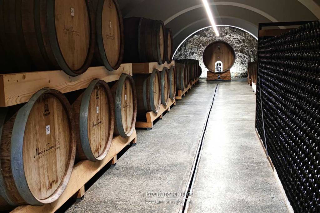 ขับรถเข้าไปดูโรงบ่มชีสบ่มไวน์ เดินไปก็ได้ถ้าอากาศดีๆ แต่ฝนลงพรำๆเลยขับรถไป คนงานกำลังทำงานกัน ไม่มีใครสนใจเรา ที่เดินวนไปวนมา สักพักก็มีคนมากวักมือเรียกให้ลงไปใต้ดิน กลายเป็น Wine Cellar พนักงานกำลังจัดเตรียม Wine Tasting ให้กรุ๊ปทัวร์ เราก็เลยขอจัด Tasting ไปสักหน่อย เป็นไวน์ที่ผลิตเองในฟาร์ม