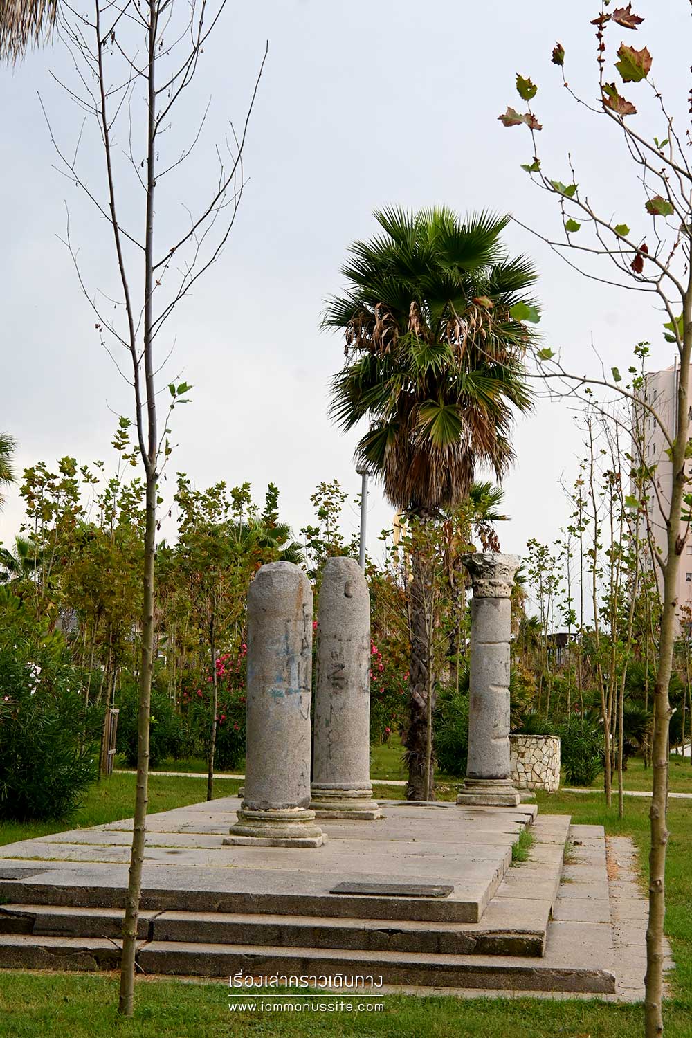 Apollonia Archaeological Park เป็นอุทยานประวัติศาสตร์ ที่มีร่องรอยของสิ่งก่อสร้างจากฝีมือชาวกรีกโบราณ ตั้งแต่ยุค 600 ปี ก่อนคริสต์กาล มีบันทึกบอกว่าที่นี่เคยเป็นศูนย์กลางการค้าสำคัญ เพราะมีทางออกสู่ทะเลได้ ต่อมาเสียหายหนักจากแผ่นดินไหวก็เลยถูกทิ้งร้างไป ยังมีร่องรอยแนวรั้วแสดงขอบเขตพื้นที่ของเมืองยาวกว่า 3 กม. มีค่าเข้าชม 600 Lek มีทั้งส่วนเป็นพิพิธภัณฑ์และส่วนร่องรอยและซากหักพังของสิ่งก่อสร้างต่างๆ ดูแผนที่แล้วเดินไปตามหมายเลขที่สนใจ มาช่วงเย็นๆก็ดีที่อากาศไม่ร้อน เดินสบายมาก