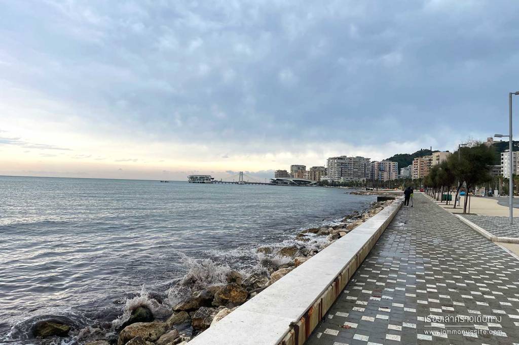 Durres Beach Promenade ทางเดินริมหาด ในวันที่เงียบเหงา