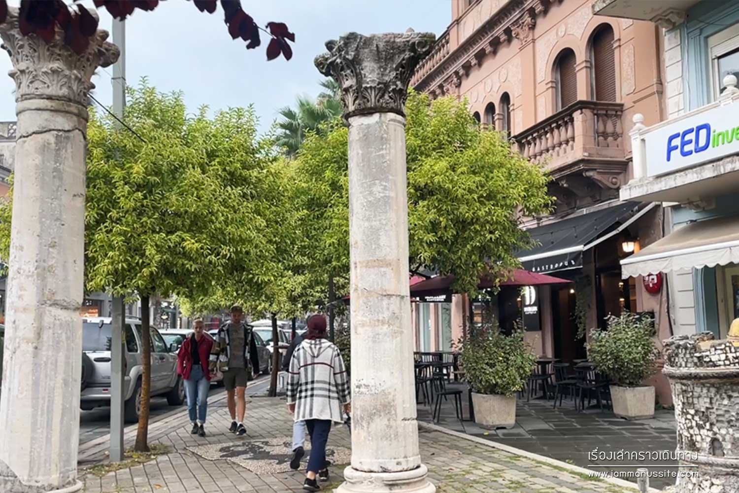 เดินไปตาม Bulevardi Epidamn เต็มไปด้วยตึกเก่าสวยๆที่ตอนนี้เป็นร้านอาหาร ร้านขายของ มองเห็น Fatih Mosque (Xhamia e Madhe) ที่ปลายถนน