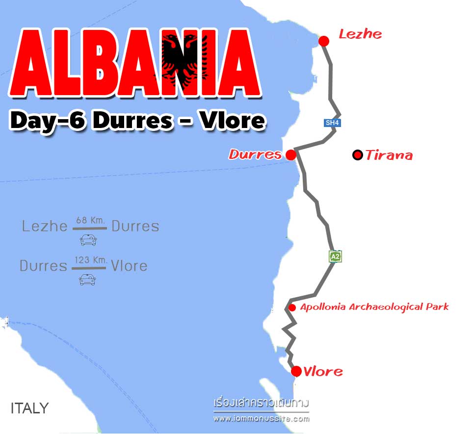 Day-6 ขับรถลงใต้เลาะเลียบทะเลเอเดรียติค Durres – Vlore