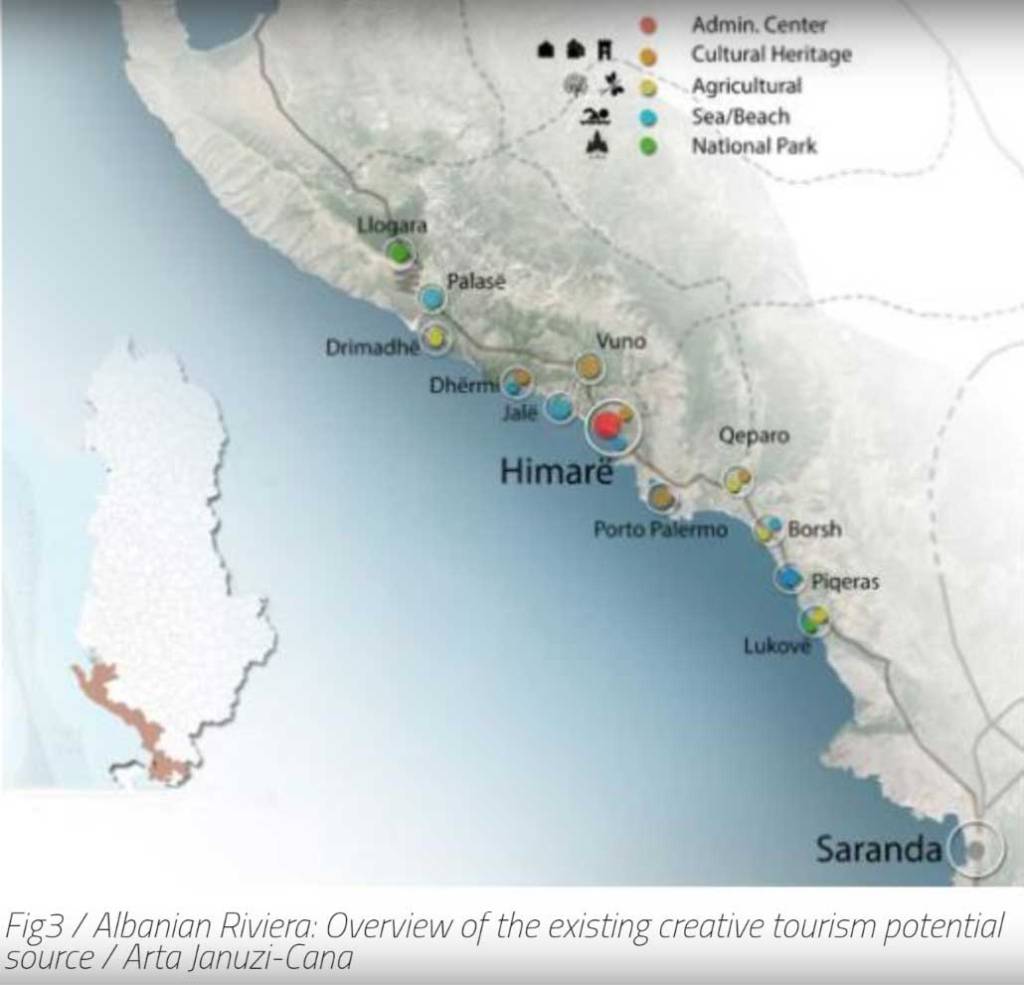 ถ้าพูดถึงริเวียร่า | Riviera คนมักจะนึกถึงแนวชายฝั่งอิตาลีหรือฝรั่งเศส ในแอลเบเนียก็มี Albanian Riviera อยู่เหมือนกัน มีลักษณะทางภูมิศาสตร์คล้ายๆกัน คือฝั่งหนึ่งเลาะเลียบเขา อีกฝั่งหนึ่งเป็นแนวชายฝั่งทะเลเมอดิเตอร์เรเนียน ความสวยงามทางธรรมชาติก็ไม่ได้ด้อยกว่าอิตาลีหรือฝรั่งเศสมากนัก แต่ความหรูหรายังห่างกันหลายเท่านัก