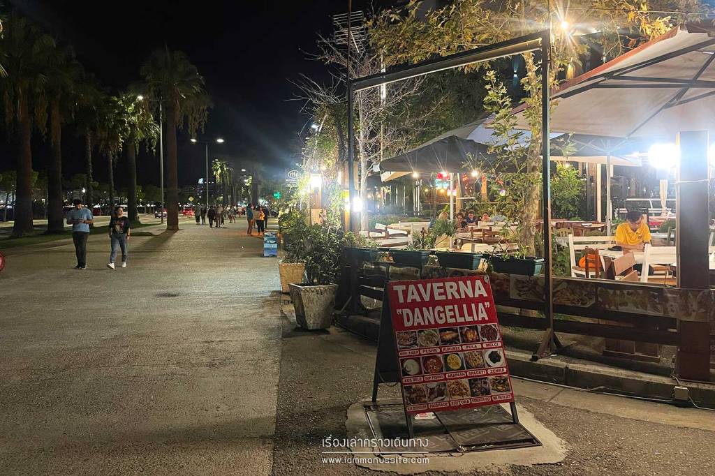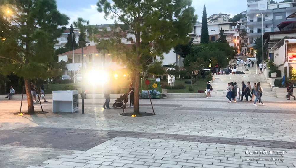 The Promenade of Sarande มีคนมาเดินเล่นนั่งเล่นกันคึกคักตั้งแต่เย็นๆ