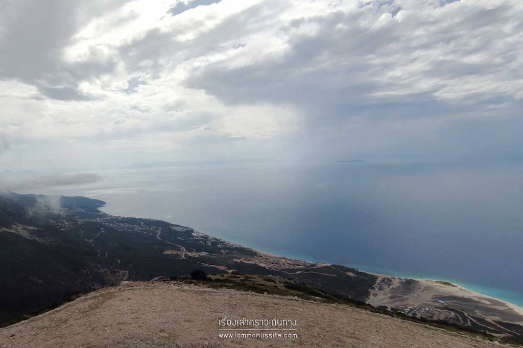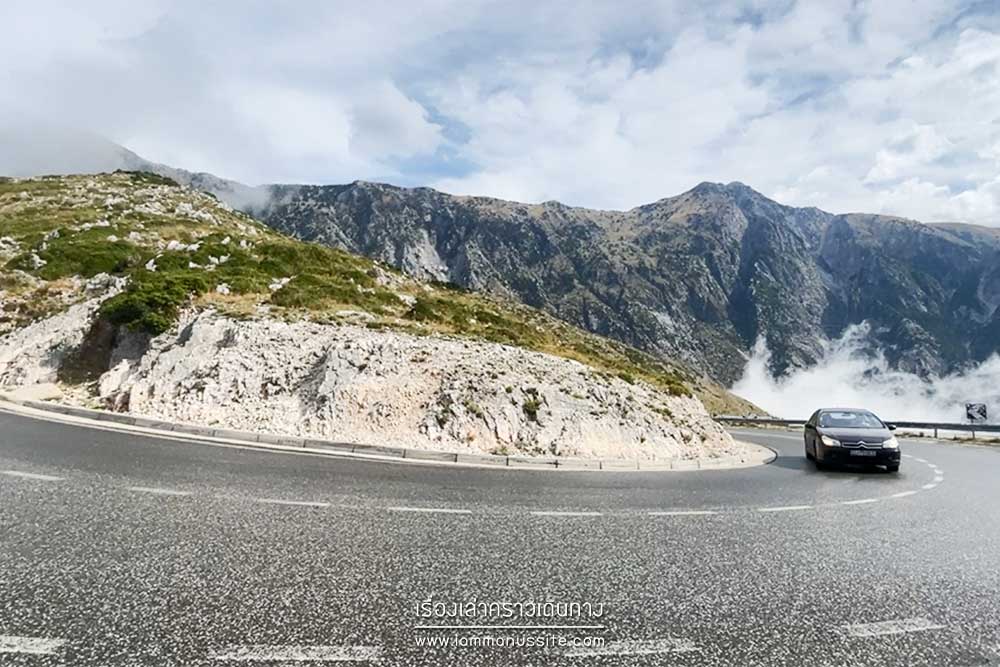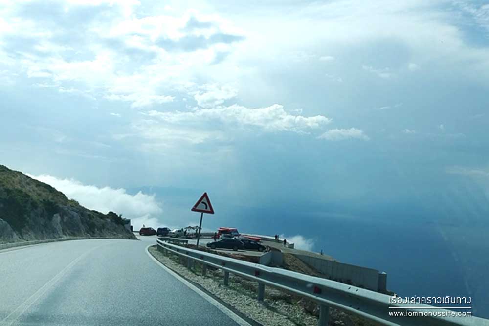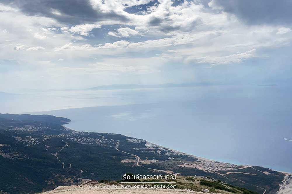 Llogara Pass จุดชมวิวบนถนนลอยฟ้า SH8 วันที่อากาศดีฟ้าใสมองเห็นฝั่งอิตาลีได้เลย เพราะอยู่ตรงข้ามกัน วันนี้ฟ้าไม่ใส เมฆหมอกลอยฟุ้งไปมา ต้องคอยจังหวะฟ้าเปิดถ่ายรูปได้เป็นช่วงๆ ถ้ามีเวลามาก สามารถปีนเนินเขาฝั่งตรงข้ามขึ้นไปได้อีกด้วยนะ