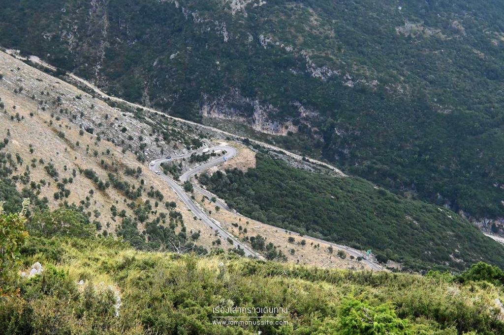 ถนนคดเคี้ยวเลาะเลียบเทือกเขาไปแบบนี้ตลอดทาง