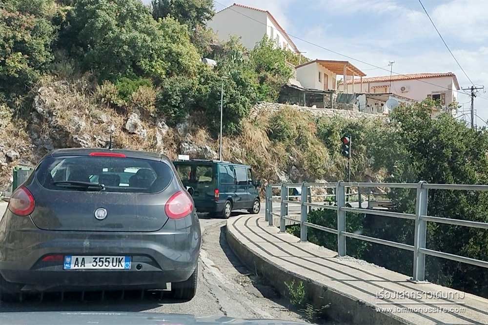 Vuno หมู่บ้านเดียวใน Albanian Riviera ที่มีไฟจราจรและเจอรถติด ไม่ใช่ว่าคนหรือรถหนาแน่น แต่เพราะถนนแคบเป็นคอขวด ขับผ่านได้ทีละคัน สวนกันไม่ได้ ก็เลยต้องมีไฟจราจร รอ 3 ไฟแดงถึงผ่านได้