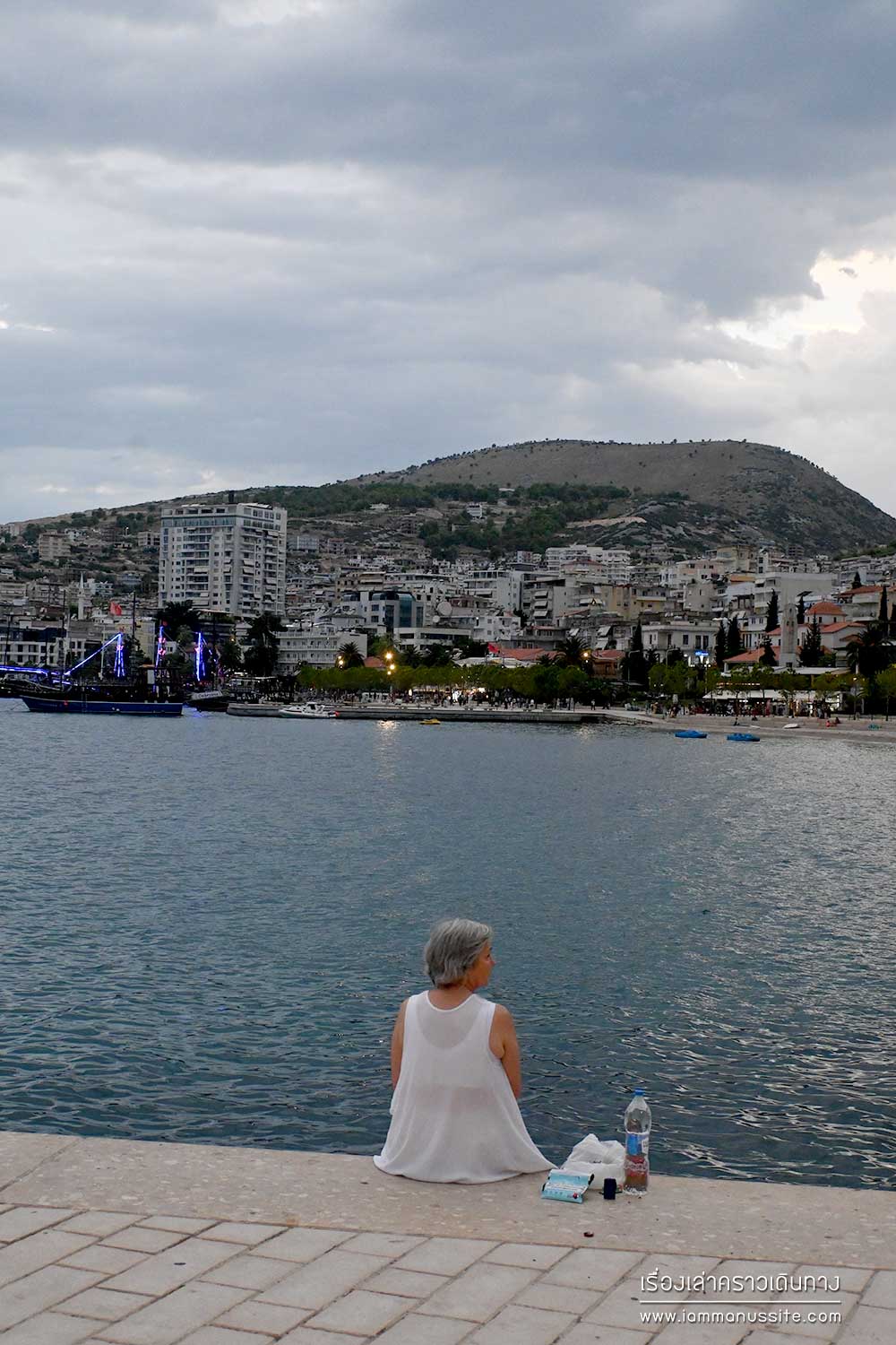Vlore เมืองใหญ่ในแถบริมทะเลเอเดรียติคทางตอนใต้ของแอลเบเนีย ไม่ได้มีเวลาไปเดินชมเมือง เพราะมาถึงเกือบมืดแล้ว แต่ได้เดินเล่นตามริมทางเดินหาด มีคนมาเดินเล่นกันพอสมควร ทางเดินเป็นทางปูหินอย่างดีอยู่ติดหาด มีถนนกั้นแล้วถึงเป็นแนวอาคาร ร้านอาหารต่างๆ เดินเล่นกันจนมืดก็วนกลับมาแวะหาอาหารเย็นทาน วันนิอากาศหนาว ลมแรงเหมือนลมฝนแต่ฝนไม่ตกแล้ว หวังว่าพรุ่งนี้อากาศจะดีขึ้น