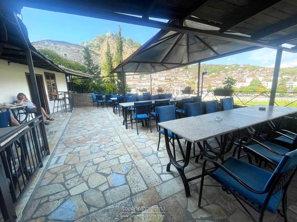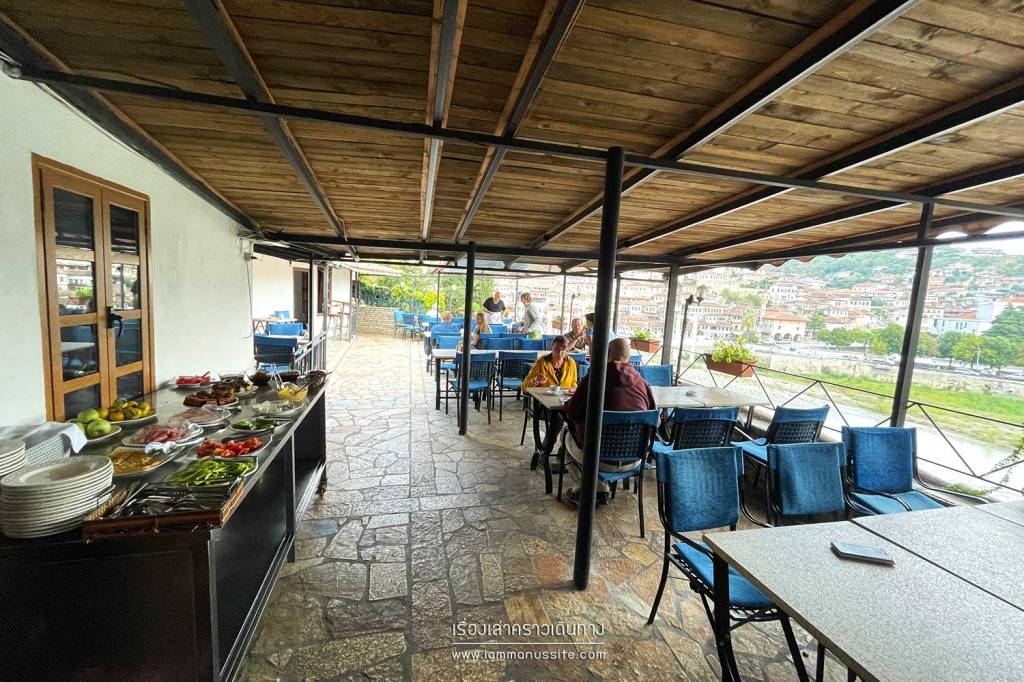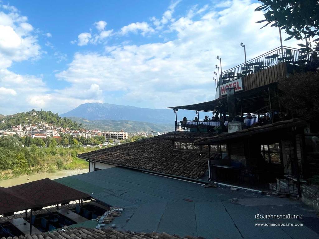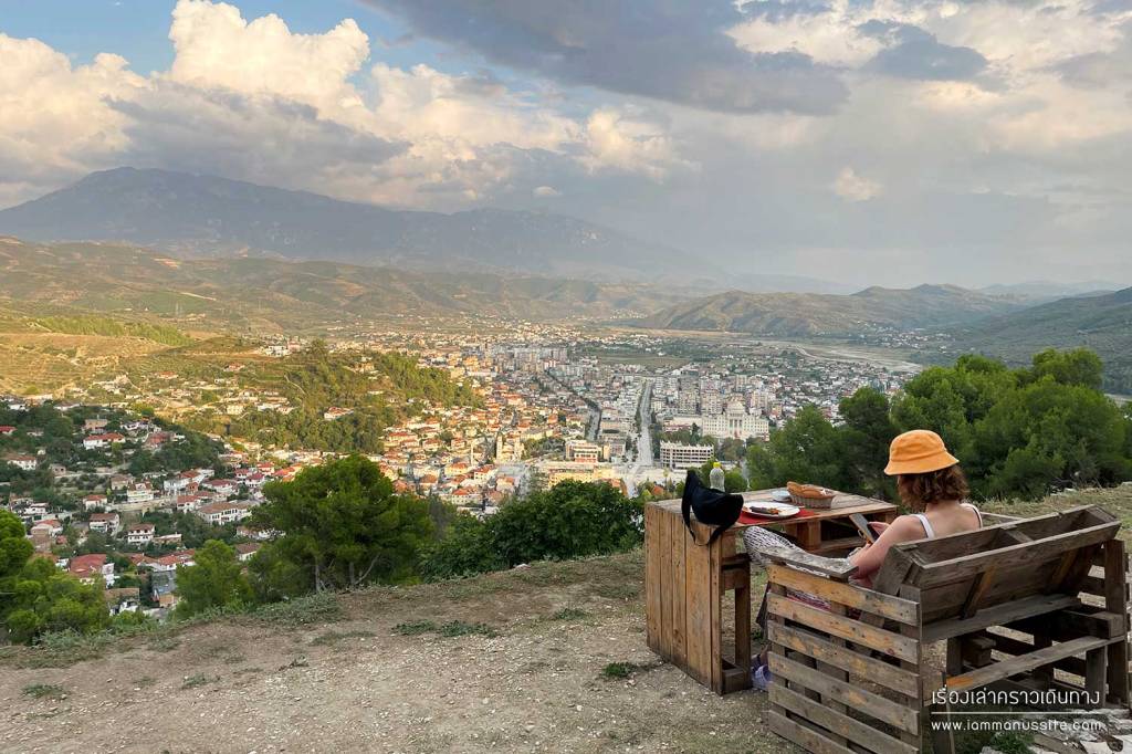 วิว Berat Old Quarter มีเทือกเขาเป็นฉากหลัง เหมาะกับการมานั่งจิบกาแฟ หรือนั่งชมวิว รับลมเย็นๆ