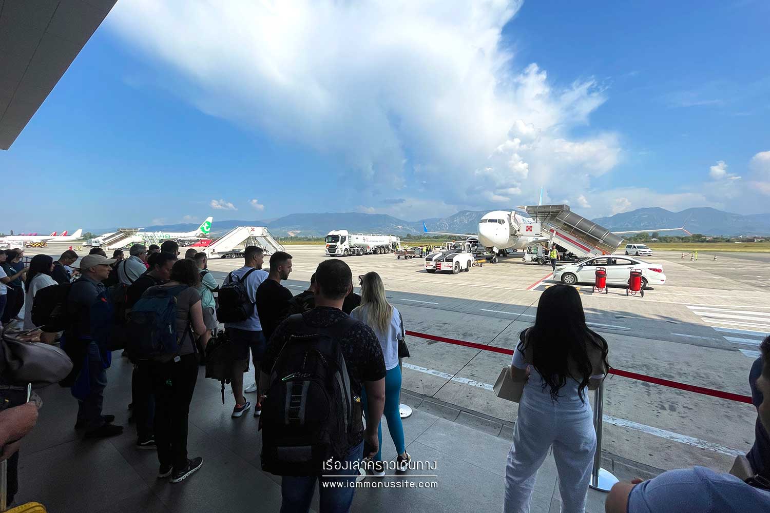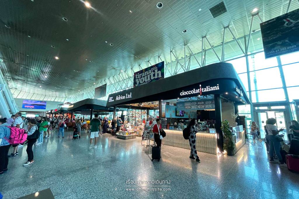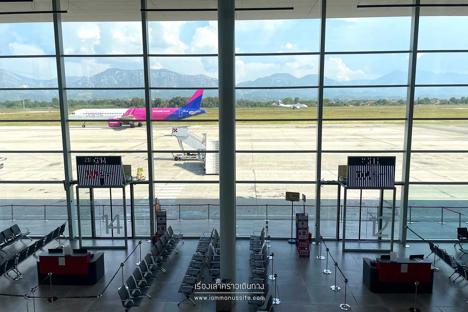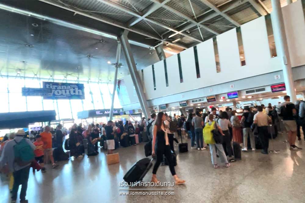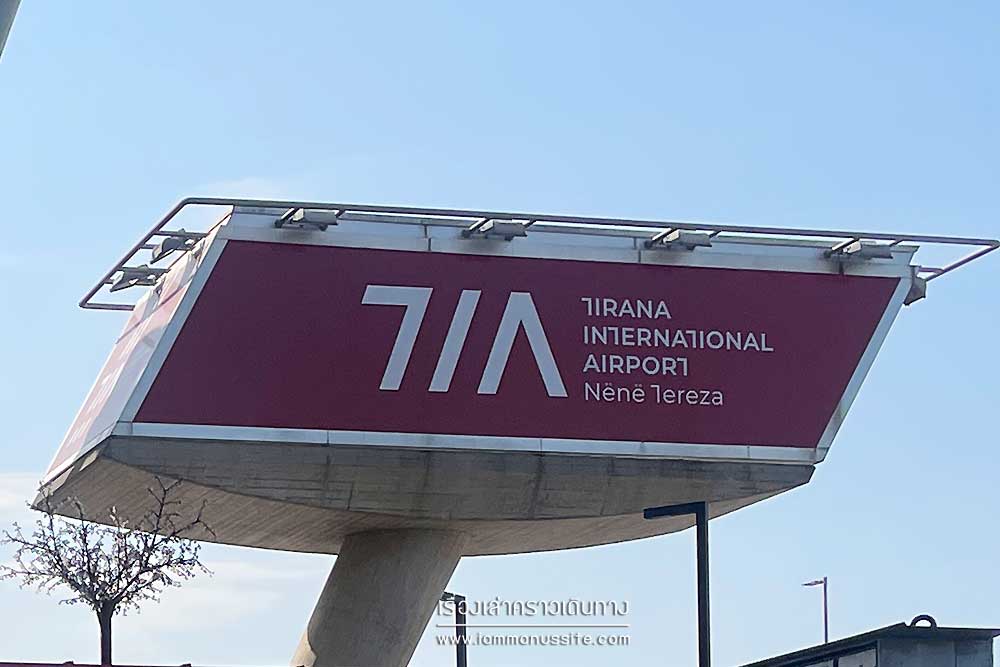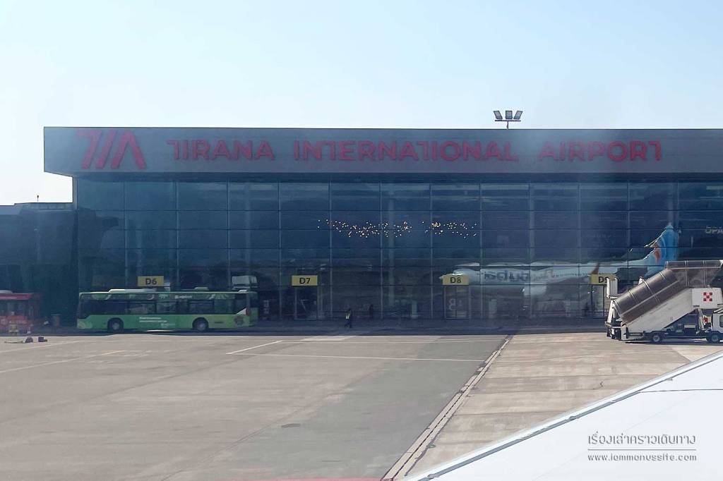 สนามบิน Tirana International Airport นี้เล็กมาก ขนาดประมาณสนามบินเชียงรายได้ มีอาคารเดียว ชั้นเดียว ขาเข้ากับขาออกอยู่ติดกันเลย Counter Check-in มี 2 แถวๆละประมาณ 12 ช่อง เวลาเปิดเคาเตอร์เช็คอินก็เลยค่อนข้างกระชั้น เราเผื่อเวลาไป 3 ชม. ต้องไปรอเคาเตอร์เปิดก่อนเวลาบินแค่ 2 ชม. มีร้านอาหารอยู่ทั้งข้างนอกและข้างในสนามบิน แต่ราคาแพงหูดับเหมือนเมืองไทย