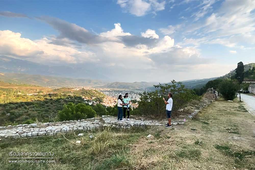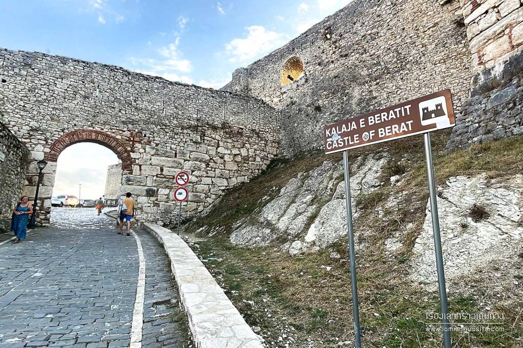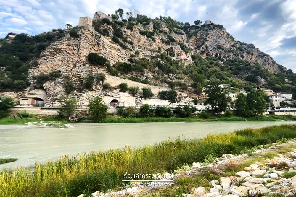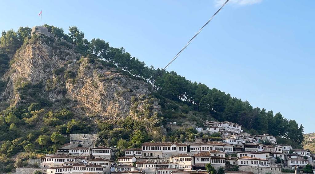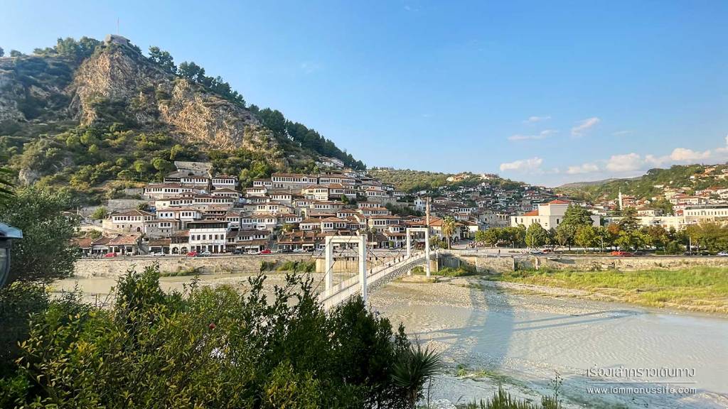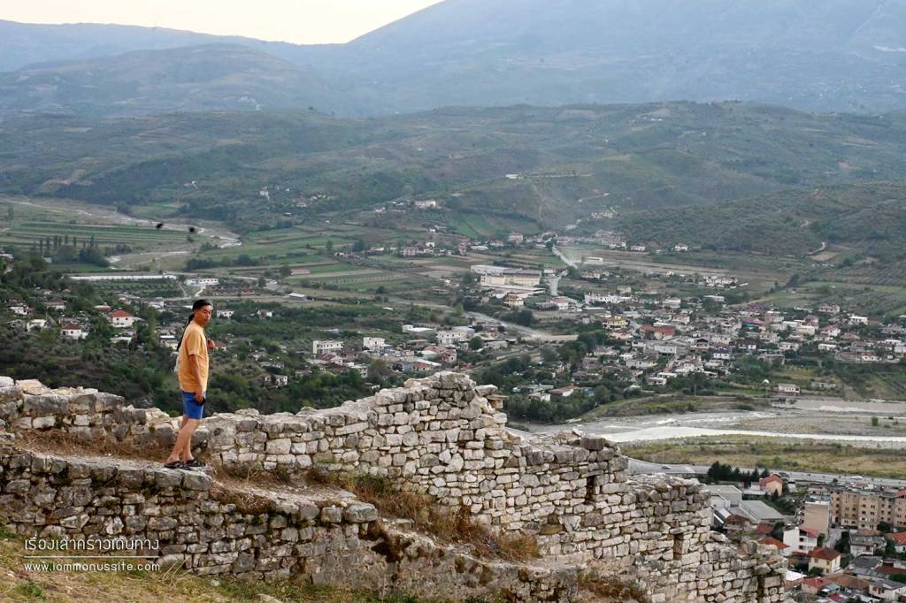 มาถึงเมืองเบรัต มองขึ้นไปบนยอดเขาจะเห็นแนวป้อมปราการและธงชาติแอลเบเนียปลิวไสวของ Berat Castle เหมือนทุกเมืองในแอลเบเนีย ที่จะมีป้อมปราการบนยอดเขา เอาไว้สังเกตการณ์