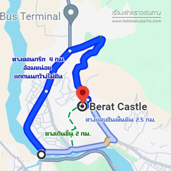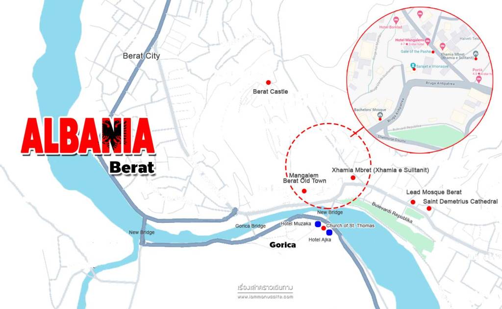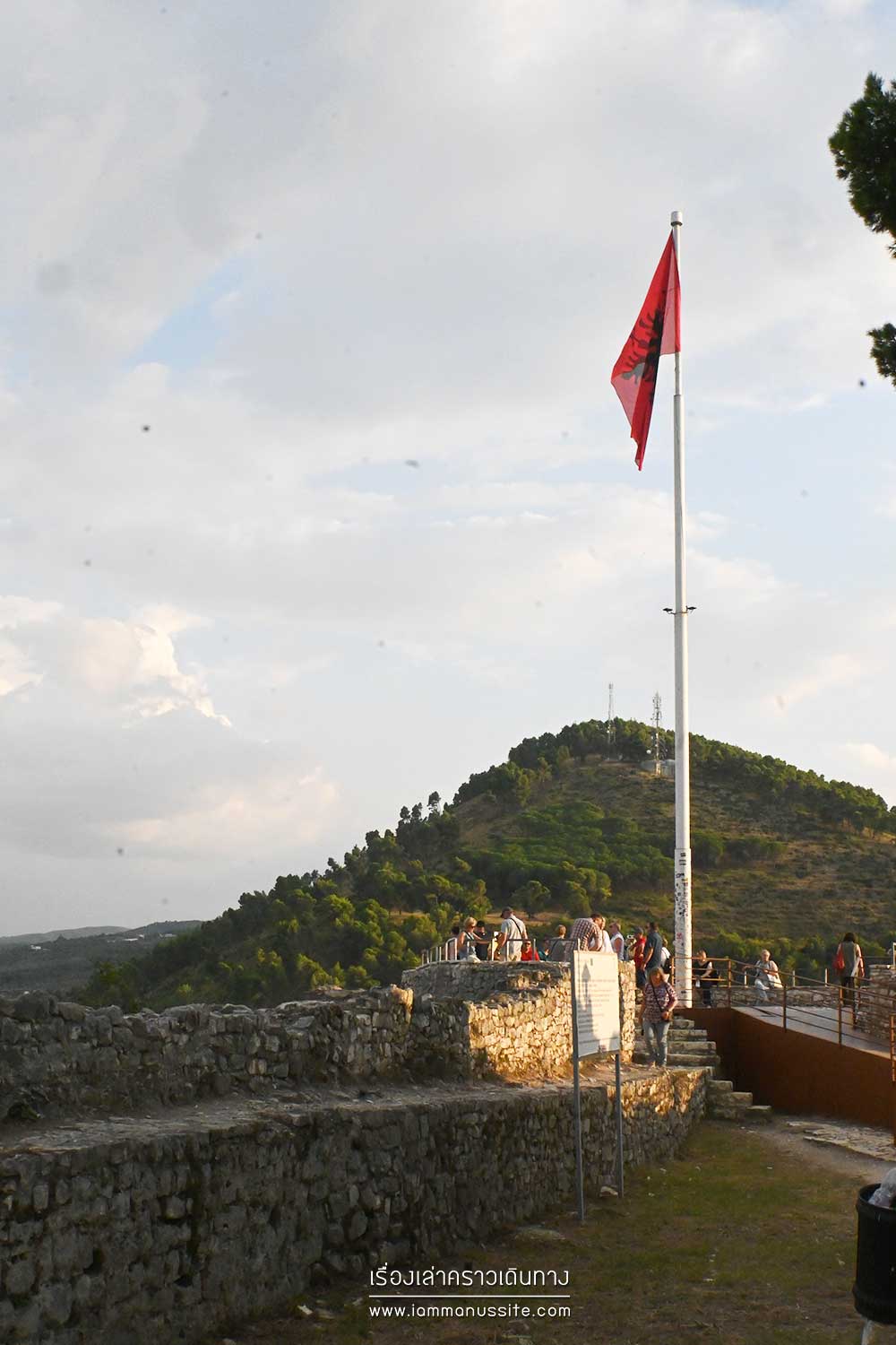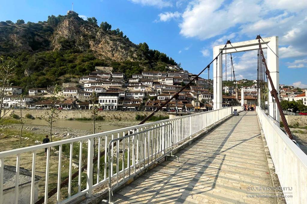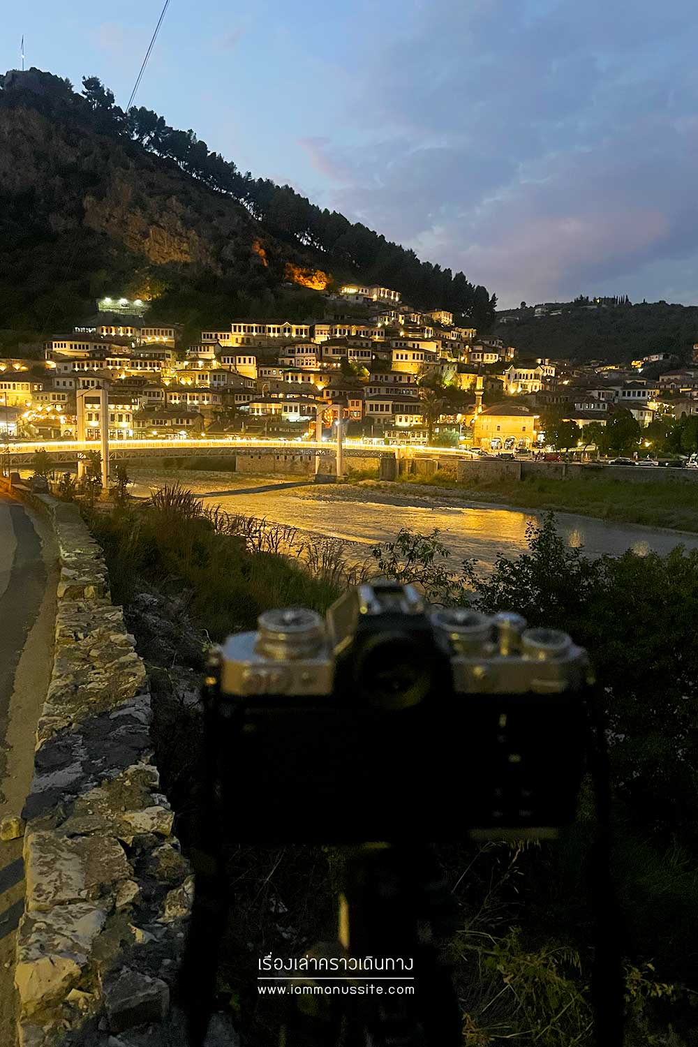 มาถึงเมืองเบรัต มองขึ้นไปบนยอดเขาจะเห็นแนวป้อมปราการและธงชาติแอลเบเนียปลิวไสวของ Berat Castle เหมือนทุกเมืองในแอลเบเนีย ที่จะมีป้อมปราการบนยอดเขา เอาไว้สังเกตการณ์