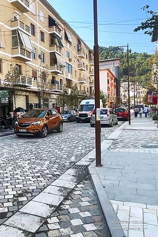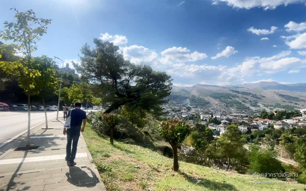 Bulevardi 18 Shtatori ถนนสายหลักของเมืองที่พุ่งตรงเข้าเชิงเขา ถ้าขับตรงไปก็มีทางวนขึ้นเขาไปตามบ้านในย่านเมืองเก่าที่เราถ่ายรูปมาจากจุดชมวิวเมื่อวาน และวนไปได้ถึง Old Bazaar และ Gjirokaster Castle