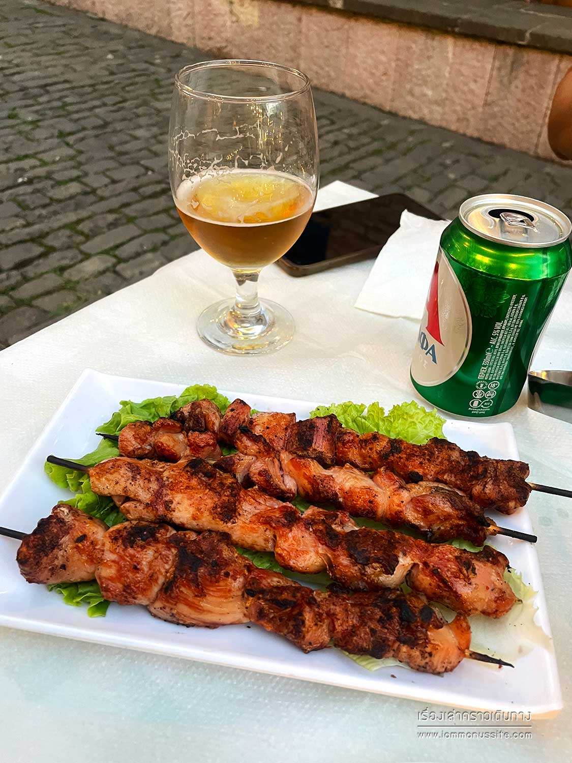 เริ่มมืดก็หาร้านอาหารนั่งกินมื้อเย็น เดินเลือกดู มีทั้งอาหารพื้นเมือง อาหารอิตาเลี่ยนอย่างพิซซ่า พาสต้า แต่เราเลือกร้านเคบับ สั่งมากินกับขนมปัง จิบเบียร์เย็นๆ ในวันที่อากาศเย็นสบาย