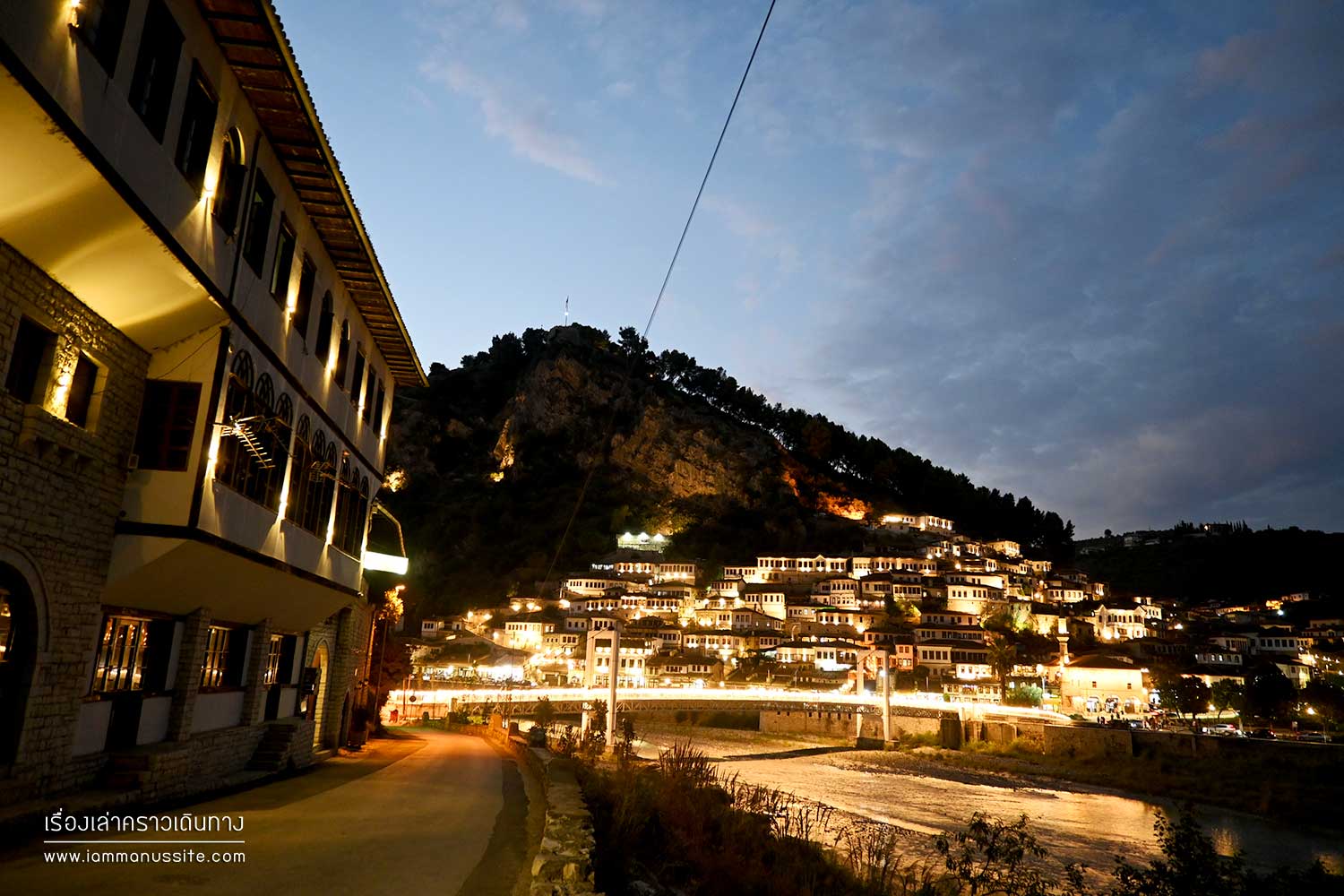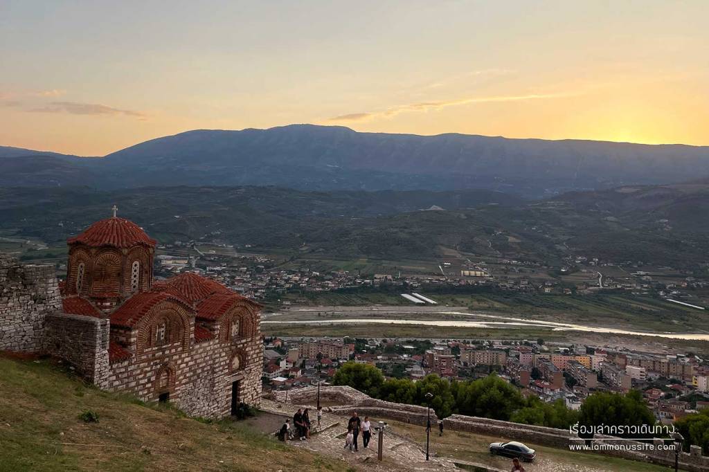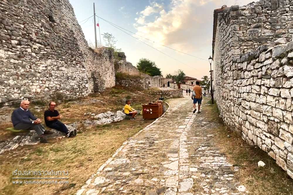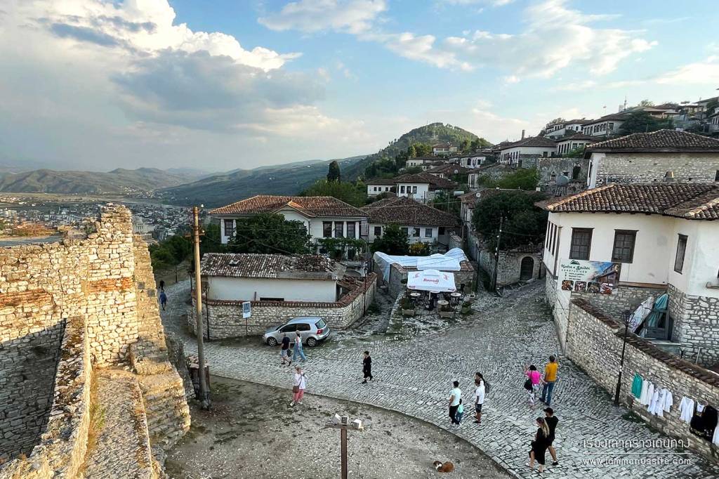 ตอนเช็คอินห้องพัก พนักงานบอกที่เที่ยวคร่าวๆให้ฟัง ได้ยินว่า Berat Castle open 24 Hrs. คิดว่าฟังผิด ก็เพิ่งจะเข้าใจว่าฟังถูกแล้ว บนนี้ไม่มีเวลาปิด มันคือหมู่บ้าน เป็นพิพิธภัณฑ์มีชีวิต ยังเห็นแนวกำแพงล้อมรอบ มีบ้านที่สร้างด้วยหิน เปิดเป็นร้านขายของ ขายอาหาร มี Byzantine church กับ Ottoman mosque หลายที่ในรั้วกำแพง ทั้งที่เป็นซากหักพังและทั้งที่ยังใช้งานอยู่