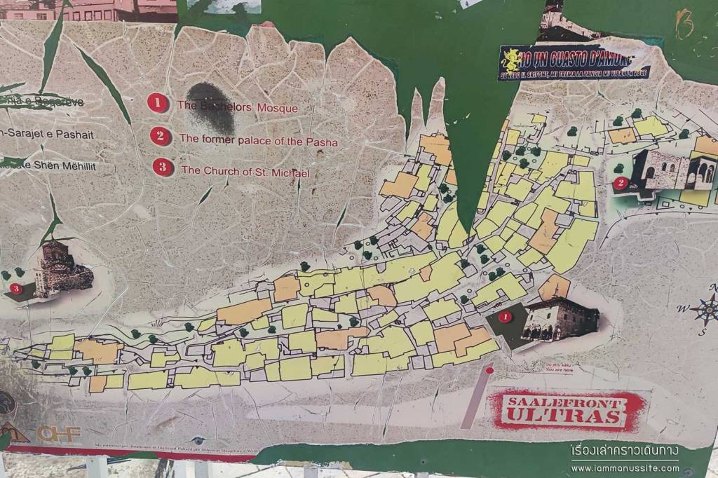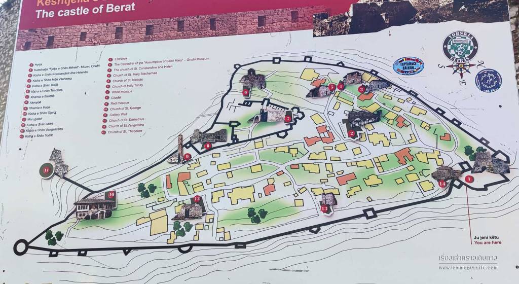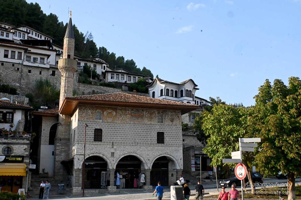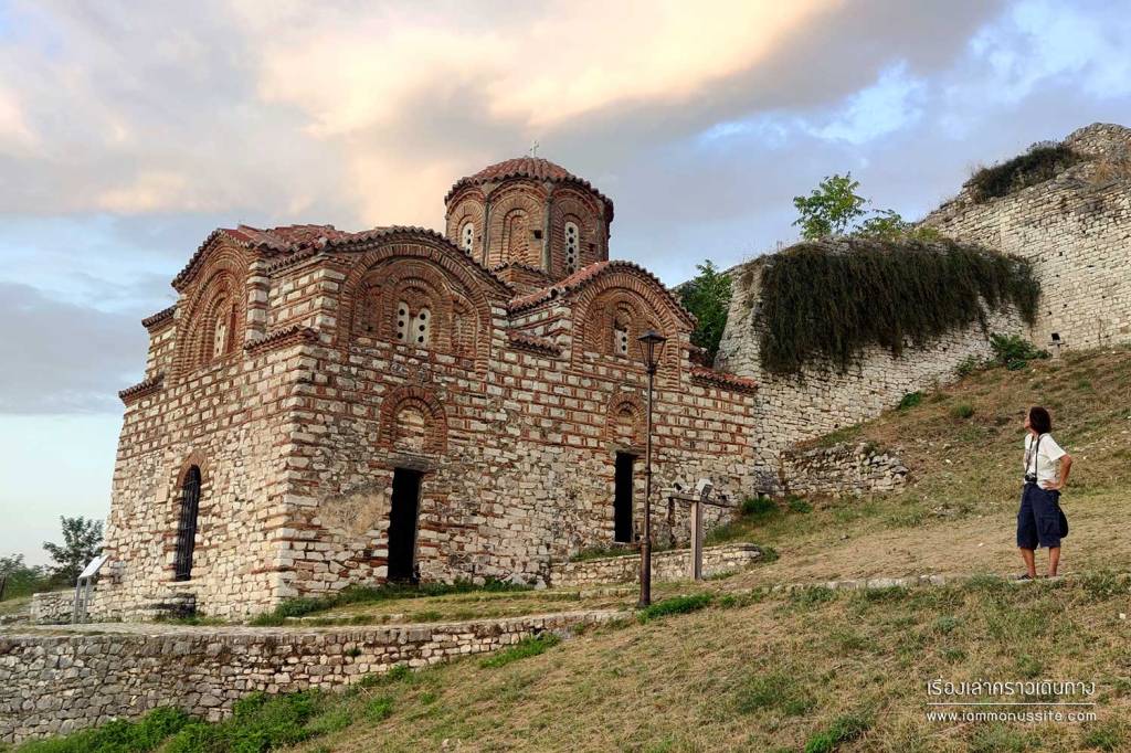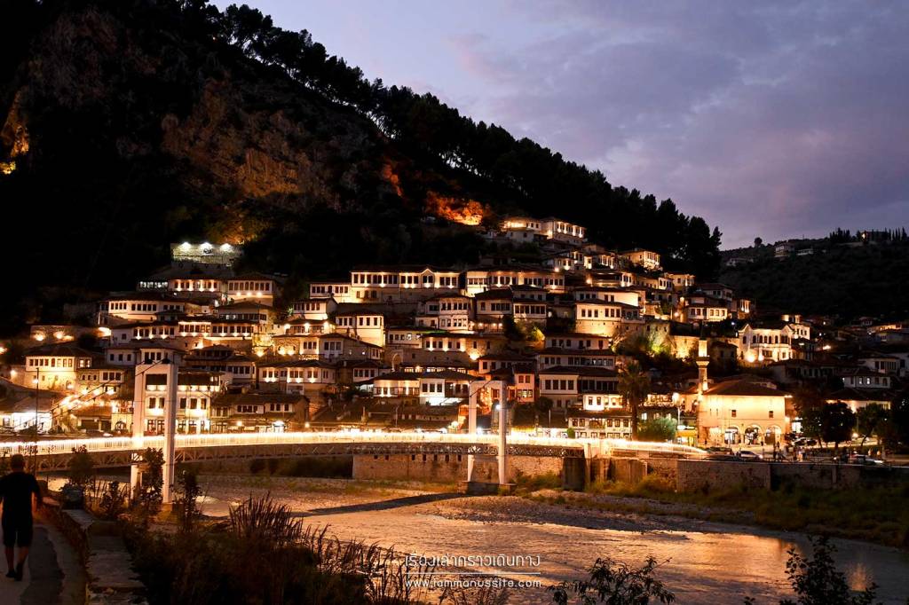 ตอนเช็คอินห้องพัก พนักงานบอกที่เที่ยวคร่าวๆให้ฟัง ได้ยินว่า Berat Castle open 24 Hrs. คิดว่าฟังผิด ก็เพิ่งจะเข้าใจว่าฟังถูกแล้ว บนนี้ไม่มีเวลาปิด มันคือหมู่บ้าน เป็นพิพิธภัณฑ์มีชีวิต ยังเห็นแนวกำแพงล้อมรอบ มีบ้านที่สร้างด้วยหิน เปิดเป็นร้านขายของ ขายอาหาร มี Byzantine church กับ Ottoman mosque หลายที่ในรั้วกำแพง ทั้งที่เป็นซากหักพังและทั้งที่ยังใช้งานอยู่