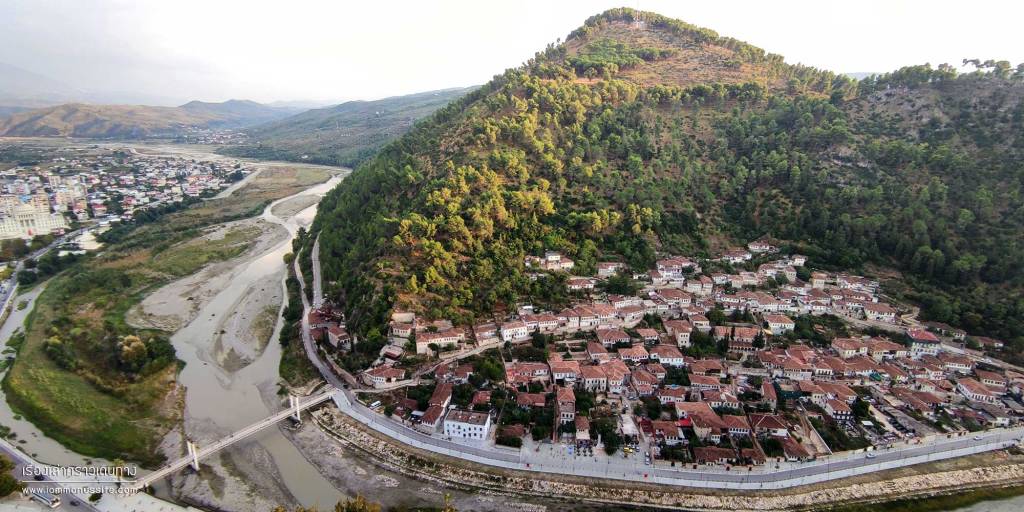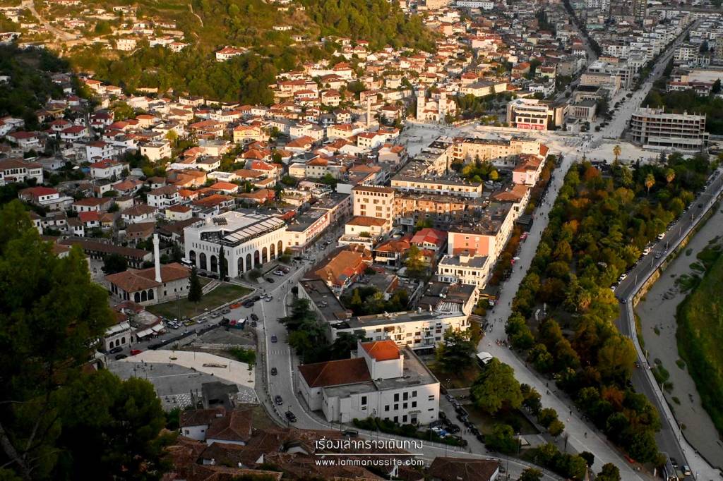 Berat Old Town มองไปถึงย่านอาคารใหม่ๆ