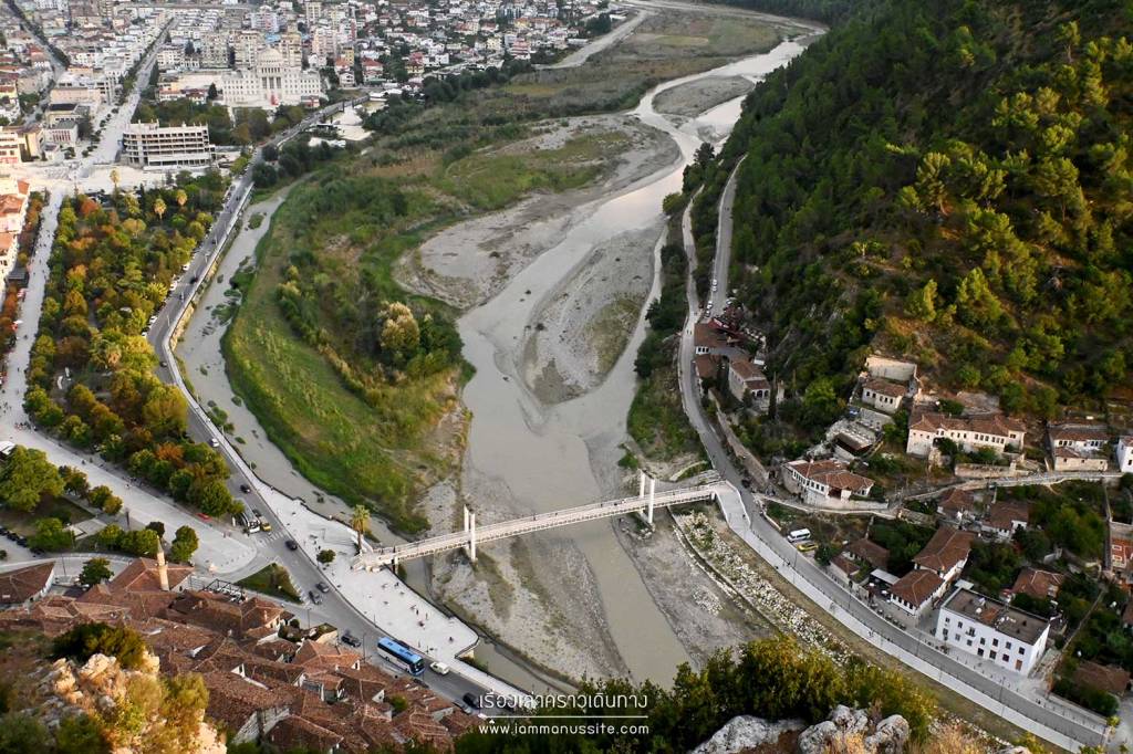 แม่น้ำโอซูมในหน้าร้อน แบ่งเมืองเบรัตเป็น 2 ฝั่ง