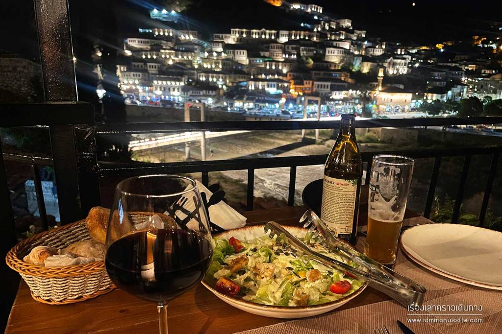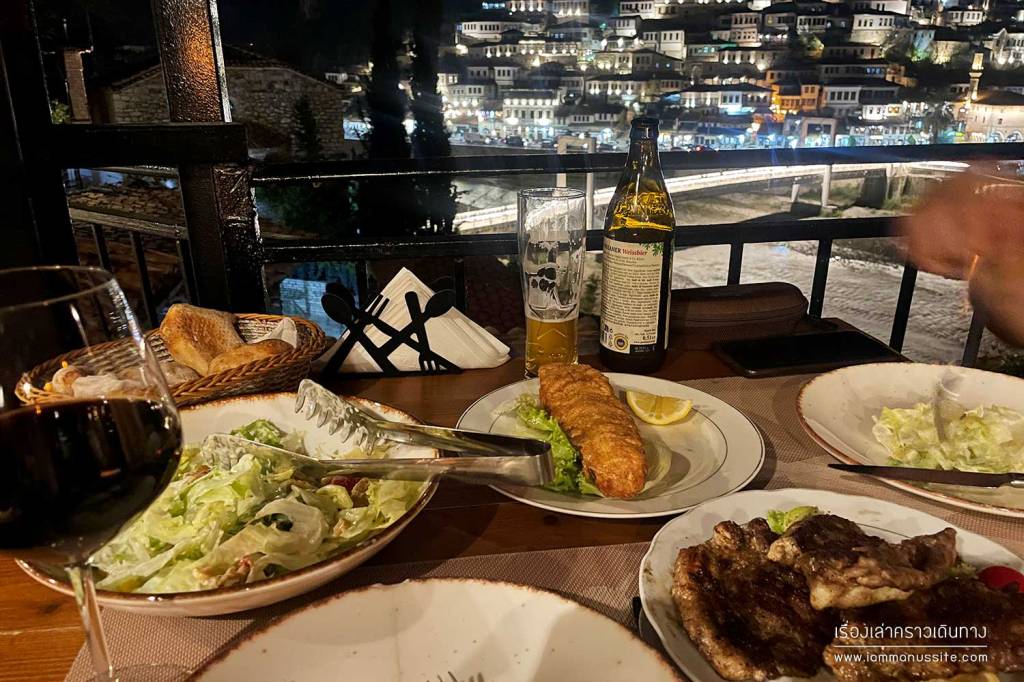 อย่างที่เล่าไว้ว่าร้านอาหารเย็น Antigoni Traditional Restorant ที่จะไปกินดันปิด เพราะเจ้าของไปเที่ยว ก็เลยตัดสินใจกินที่ร้านอาหารของโรงแรม Restorant Ajka ที่อยู่ชั้น 4 วิวสวยและอาหารอร่อยเกินคาด จบแอลเบเนียวันที่ 9 กับอาหารเย็นและวิวเมืองเบรัต พรุ่งนี้กลับเข้า Tirana เพื่อขึ้นเครื่องกลับเมืองไทย