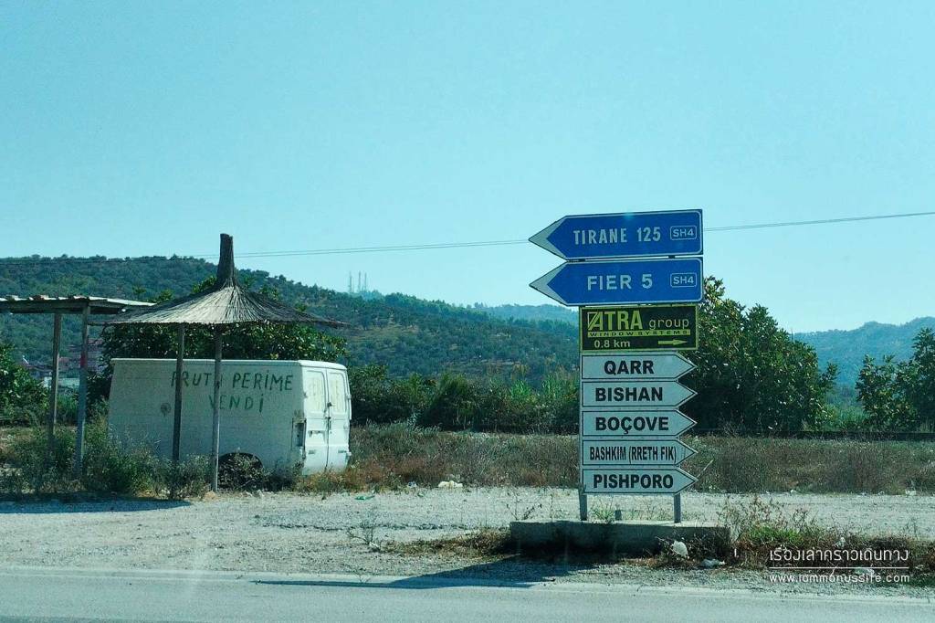 ถนนที่แอลเบเนียแม้จะเล็กแต่พื้นผิวถนนดีตลอด ขับผ่านเมือง Fier พักหากาแฟจิบสักหน่อย