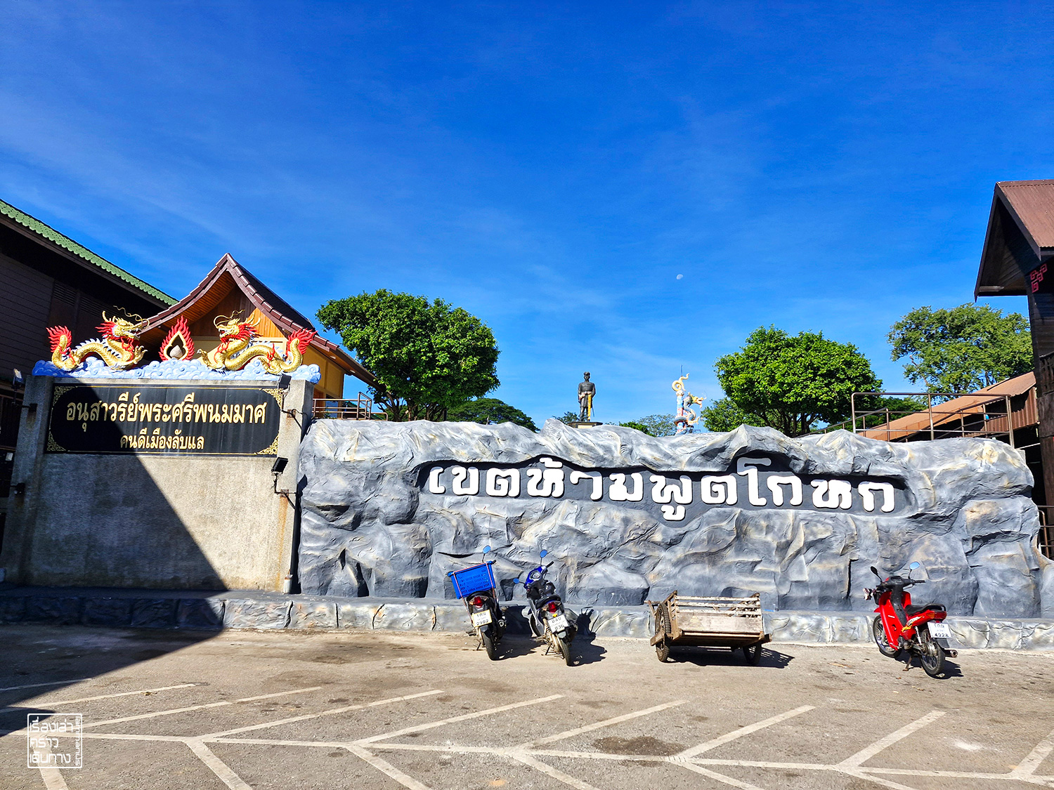 อิ่มแล้วก็ย้อนกลับมาตรงซุ้มประตูเมืองลับแล สวนสาธารณะเล็กๆข้างประตูเมืองมีรูปปั้นรูปหญิงสาวยืนอุ้มเด็กน้อยกับชายหนุ่มนั่งคอตกอยู่ข้างๆ และประโยค “ขอเพียงสัจจะวาจา” เป็นรูปปั้นที่บอกเล่าตำนานพื้นเมือง เรื่องเมืองลับแลกับการห้ามพูดโกหก