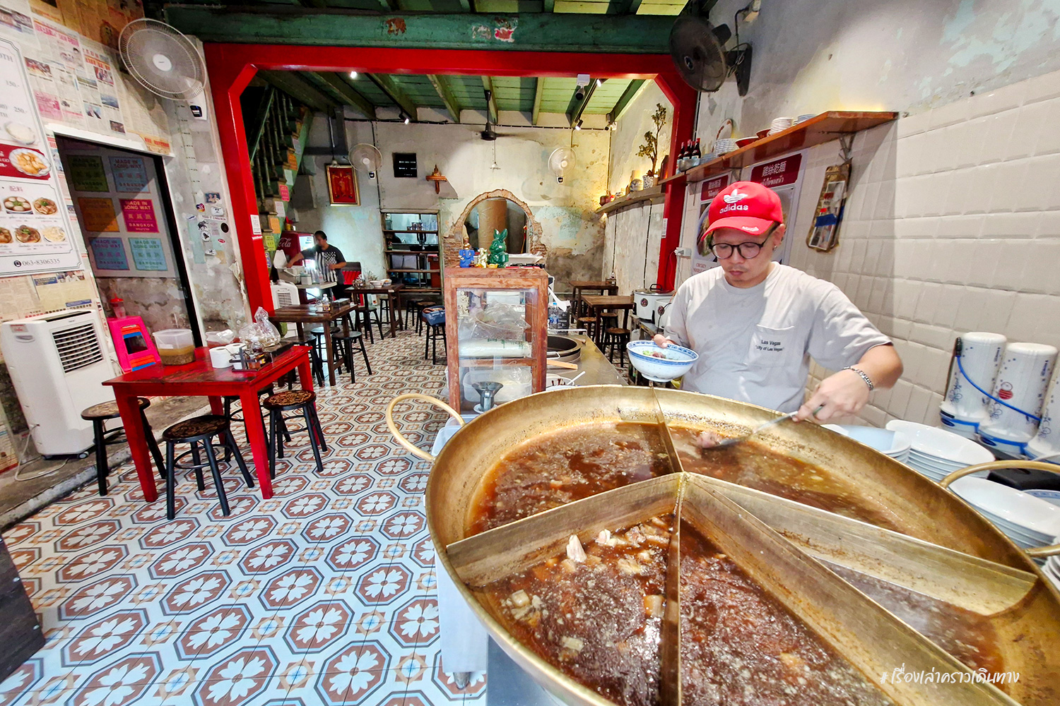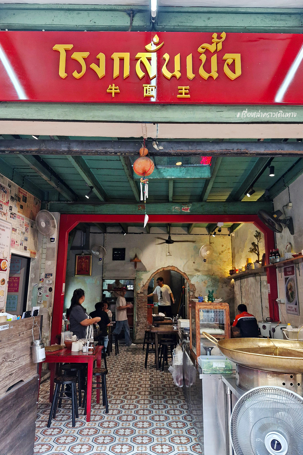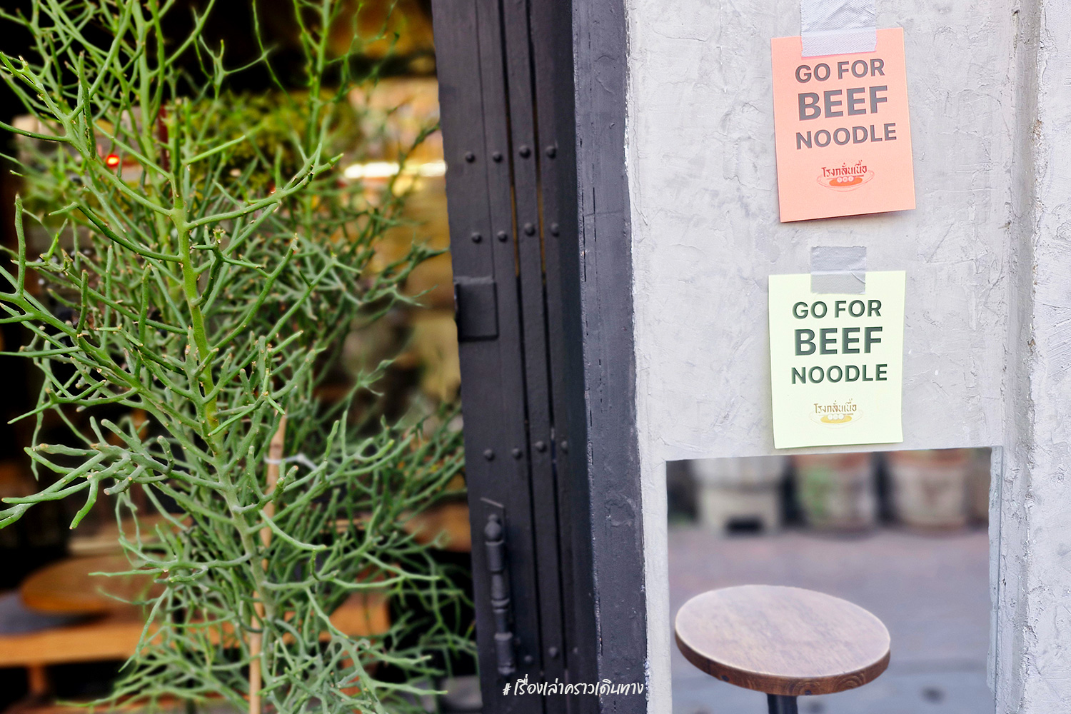 ร้านก๋วยเตี๋ยวเนื้อตุ๋นของคนรุ่นใหม่ที่มาเช่าห้องแถวในอาคารเก่ากลางถนนทรงวาด (ตึกผลไม้) ร้านใหม่แต่ทำได้อร่อยทีเดียว วันนี้แค่อยากลอง เลยสั่งเกาเหลา กับเส้นลวกมาแบ่งกันชิม ความแปลกของโรงกลั่นเนื้อคือปาท่องโก๋ ที่ให้สั่งมากินกับเกาเหลา ร้านโรงกลั่นเนื้อเป็นเจ้าของเดียวกับร้านกาแฟทรงวาด หน้าร้านกาแฟก็มีกระดาษสีสดใสแปะไว้เหมือนสะกดจิตว่า จงไปกินก๋วยเตี๋ยวเนื้อต่อ~~ “Go for Beef noodle”