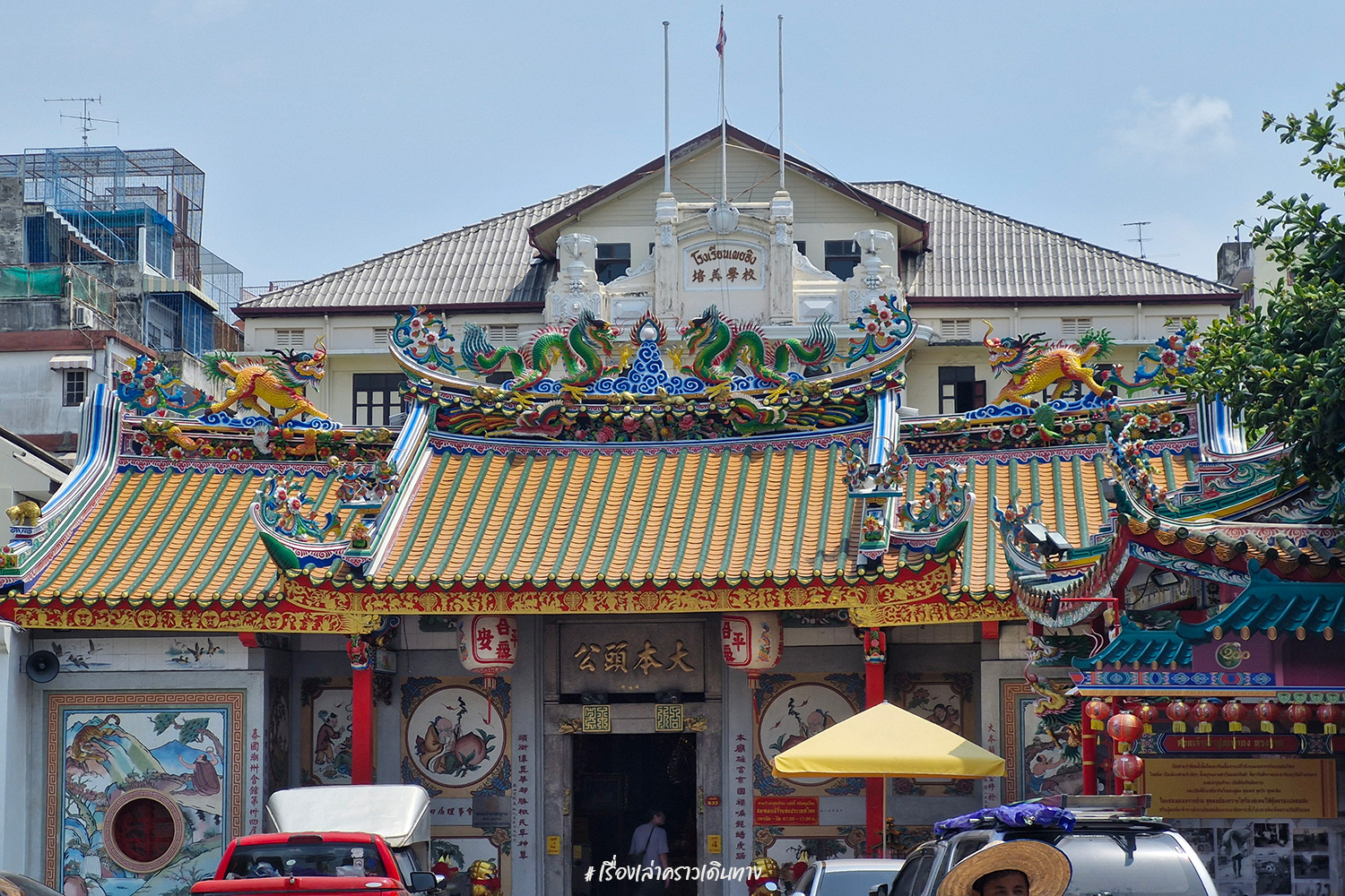 ศาลเจ้าอยู่ถัดจากร้านเอฟ วี และ ร้านอี_กา คาดกันว่าสร้างขึ้นโดยชาวจีนอพยพที่ขึ้นเรือมาตั้งรกรากในละแวกนี้ เดินทะลุศาลเจ้าไปด้านหลังจะเจออาคารเก่าแก่แบบยุโรป สีเหลืองสวยของโรงเรียนเผยอิง โรงเรียนที่ในอดีตสอนหนังสือด้วยภาษาจีน ปัจจุบันสอนทั้งภาษาไทยและจีน ว่ากันว่าผลิตเจ้าสัวในประเทศมามากมาย เช่น เจ้าสัวอนันต์ เจ้าพ่ออสังหาฯ, เจ้าสัวเจริญ ไทยเบฟ, เจ้าสัวอุเทน เตะชะไพบูลย์ ผู้ก่อตั้งมูลนิธิปอเต็กตึ๊ง, คุณสมคิด จาตุศรีพิทักษ์ หรืออากู๋แกรมมี่ ไพบูลย์ ดำรงค์ชัยธรรม ก็เป็นศิษย์เก่าเผยอิง