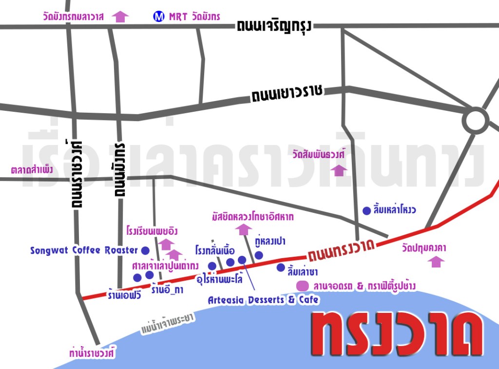 “ทรงวาด” ถนนเก่าแก่สมัยรัชกาลที่ ๕ เป็นถนนที่พระพุทธเจ้าหลวงได้ทรงวาดผังให้ตัดถนนเลียบแม่น้ำเจ้าพระยาขนานไปกับสำเพ็งและถนนเยาวราช (เป็นที่มาของชื่อว่า “ทรงวาด”) ในอดีตทรงวาดเป็นย่านการค้าสำคัญเพราะมีท่าเรือขนส่งสินค้าได้สะดวก เป็นชุมชนชาวจีนขนาดใหญ่ ต่อเนื่องจากเยาวราชและสำเพ็ง กาลเวลาผ่านไปทรงวาดไม่คึกคักเหมือนเดิมเพราะไม่มีการขนส่งสินค้าทางเรือเข้ามาในเมืองชั้นในกันอีกแล้ว และเพราะกฎหมายห้ามรถบรรทุกขนาดใหญ่ไม่ให้เข้ามาขนส่งสินค้ากลางเมืองได้อีก ทำให้เหลือเป็นเพียงบริษัท สำนักงาน หรือที่พักอาศัย หลงเหลือร้านค้าส่งพืชพันธุ์ทางการเกษตรแค่ไม่กี่ร้าน