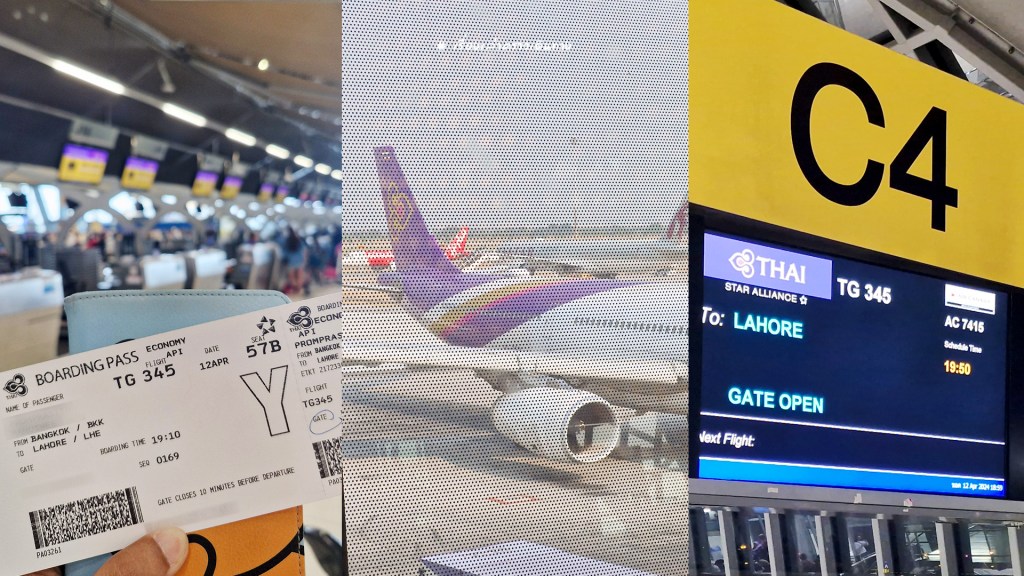 Day-0 วันเริ่มต้นการเดินทาง ใช้บริการการบินไทย บินตรงกรุงเทพฯ-ละฮอร์ (ทำไมไม่บินลงเมืองหลวงอิสลามาบัด? ก็มันแพง น่าจะเพราะเป็นวันหยุด) TG-345 เครื่องลงที่สนามบินละฮอร์ตอนเวลาสีทุ่มครึ่งของปากีสถาน (เวลาเร็วกว่าไทย 2 ชม.) แผนวันนี้คือ นั่งรถจากละฮอร์ไปเช้าอิสลามาบัดเลย คือนอนไปบนรถนั่นแหละ เปิดประเดิมก็ปวดหลังกันเลย ฮา…..