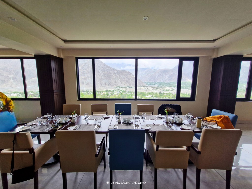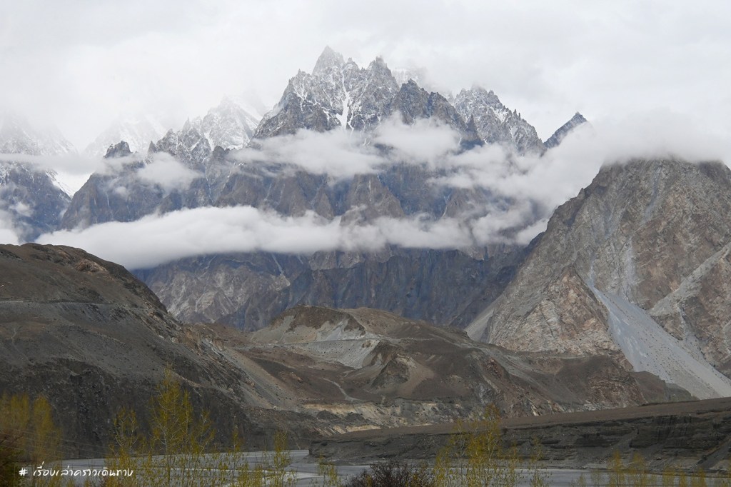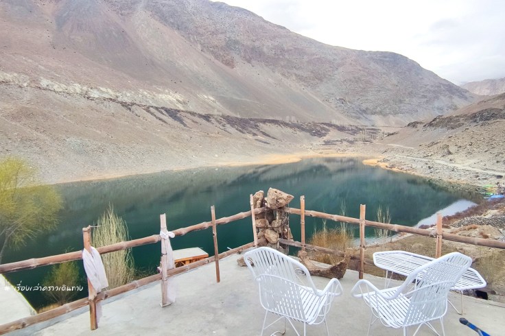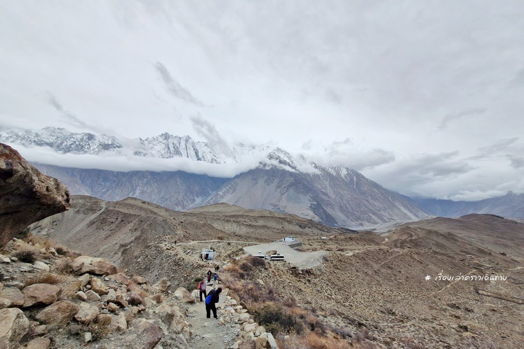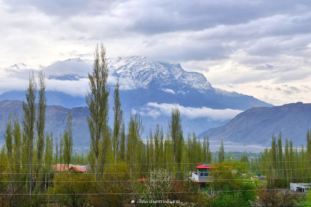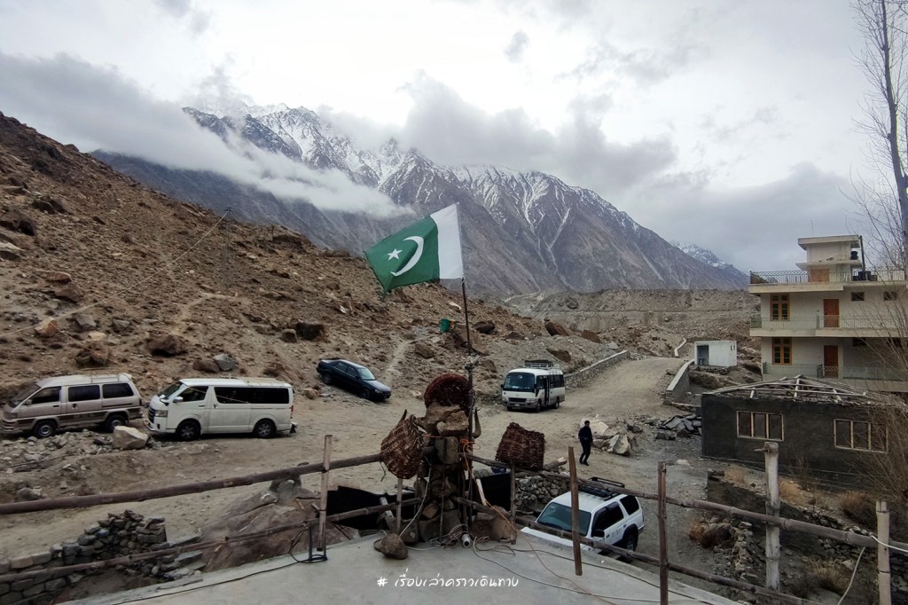 Day-2 ยามเช้าที่ สการ์ดู | Skardu ฟ้าอึมครึมนิดหน่อย แต่พอมองเห็นยอดเขามีหิมะขาวๆอยู่ วันนี้พวกเราจะเดินทางทางรถข้ามเขาไปทางทิศตะวันตก เข้าสู่คาราโครัมไฮเวย์กันแล้ว ตามแผนดั้งเดิมเริ่มแรก จะนั่งรถจาก Skadu >> Hunza Valley ได้เที่ยวชม Baltit Fort & Altit Fort แต่…. ที่พักฮุนซ่าที่ต้องการพักดันเต็ม จะว่างวันรุ่งขึ้น Land Agent ก็เลยทำการปรับเปลี่ยนโดยให้เรานั่งรถยาวไปนอนที่ Attabad Lake เลย ทำให้เพิ่มระยะทางไปอีก 6-70 กม. เพิ่มเวลาไปอีก 2 ชม.! แล้วค่อยกลับมานอนฮุนซ่าในคืนถัดไป ซึ่งเป็นแผนที่ไม่ดี อย่าหาทำ เพราะต้องนั่งรถย้อนไปย้อนมา เสียเวลามาก และทำให้วันที่ 2 ของทริปพวกเรานั่งรถยาวๆจาก Skardu >>>> Attabad Lake 10 ชม. ไปถึงที่พักก็มืดพอดี