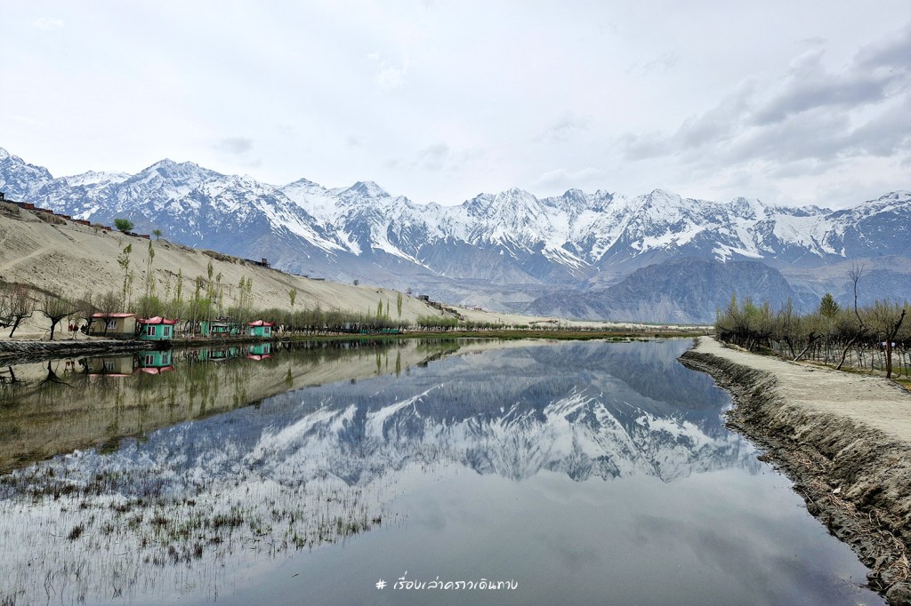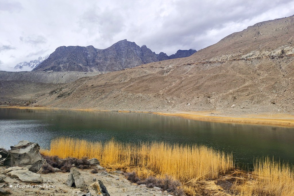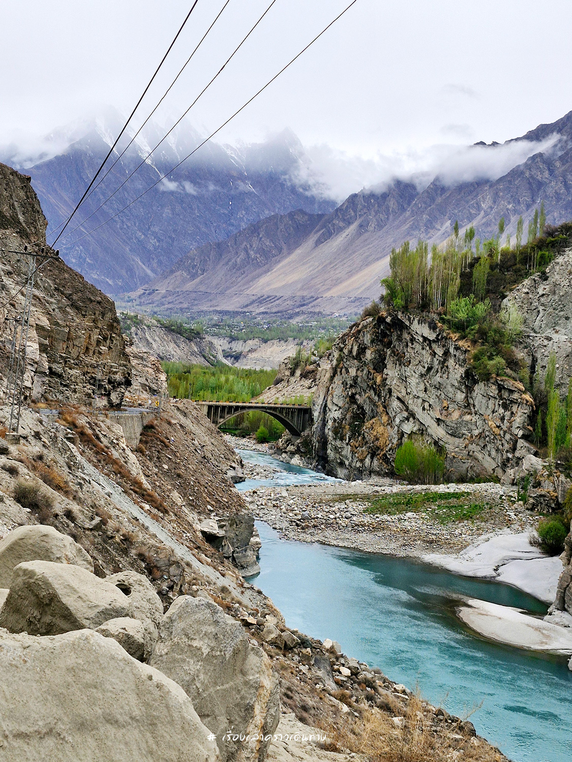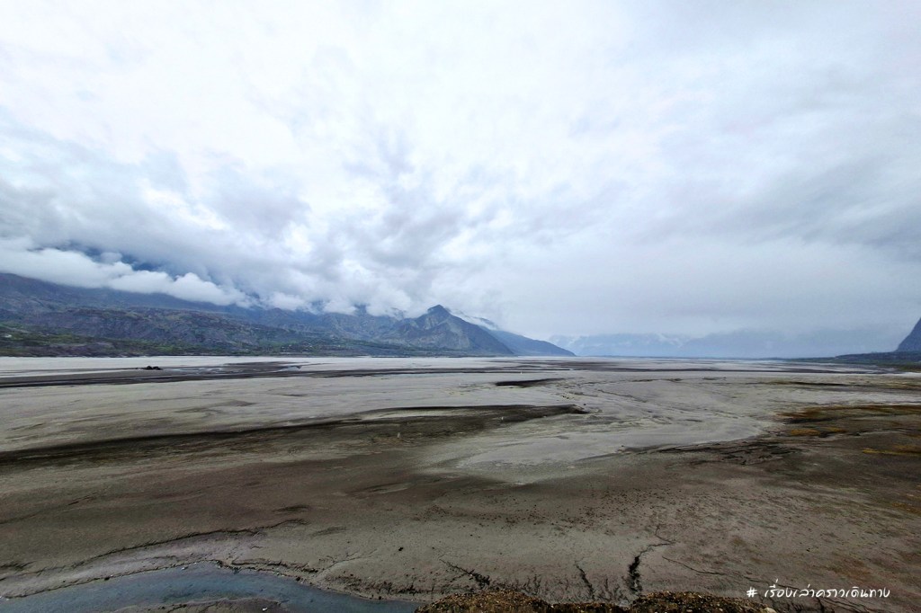 Day-2 ยามเช้าที่ สการ์ดู | Skardu ฟ้าอึมครึมนิดหน่อย แต่พอมองเห็นยอดเขามีหิมะขาวๆอยู่ วันนี้พวกเราจะเดินทางทางรถข้ามเขาไปทางทิศตะวันตก เข้าสู่คาราโครัมไฮเวย์กันแล้ว ตามแผนดั้งเดิมเริ่มแรก จะนั่งรถจาก Skadu >> Hunza Valley ได้เที่ยวชม Baltit Fort & Altit Fort แต่…. ที่พักฮุนซ่าที่ต้องการพักดันเต็ม จะว่างวันรุ่งขึ้น Land Agent ก็เลยทำการปรับเปลี่ยนโดยให้เรานั่งรถยาวไปนอนที่ Attabad Lake เลย ทำให้เพิ่มระยะทางไปอีก 6-70 กม. เพิ่มเวลาไปอีก 2 ชม.! แล้วค่อยกลับมานอนฮุนซ่าในคืนถัดไป ซึ่งเป็นแผนที่ไม่ดี อย่าหาทำ เพราะต้องนั่งรถย้อนไปย้อนมา เสียเวลามาก และทำให้วันที่ 2 ของทริปพวกเรานั่งรถยาวๆจาก Skardu >>>> Attabad Lake 10 ชม. ไปถึงที่พักก็มืดพอดี