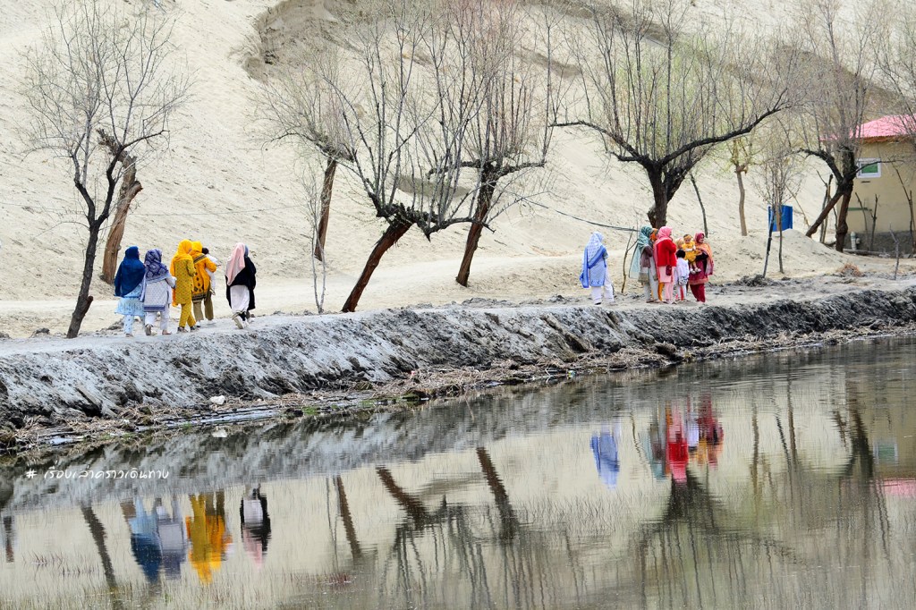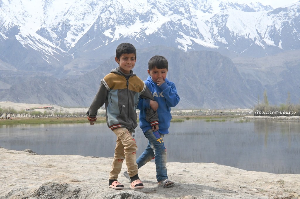 Katpana Lake & Katpana Desert เป็นทะเลสาบขนาดไม่ใหญ่ แต่จุดเด่นคือภาพสะท้อนของภูเขาหิมะ คล้ายๆกับที่ Fairy Meadow ทะเลสาบอยู่ในเขตพื้นที่ของทะเลทรายเย็น (Cold Desert) ด้วย จึงมีเนินทรายอยู่ด้วย มีคนปากีสถานมาเที่ยวกันพอสมควร บางคนก็ปีนเนินทรายเล่น บางกลุ่มก็มาถ่ายรูปกับทะเลสาบ แล้วก็มีเด็กๆชาวบ้านแถวนั้นเยอะเลย น่ารักมาก คุยเก่งด้วย